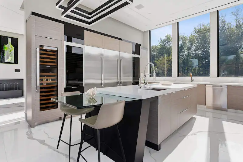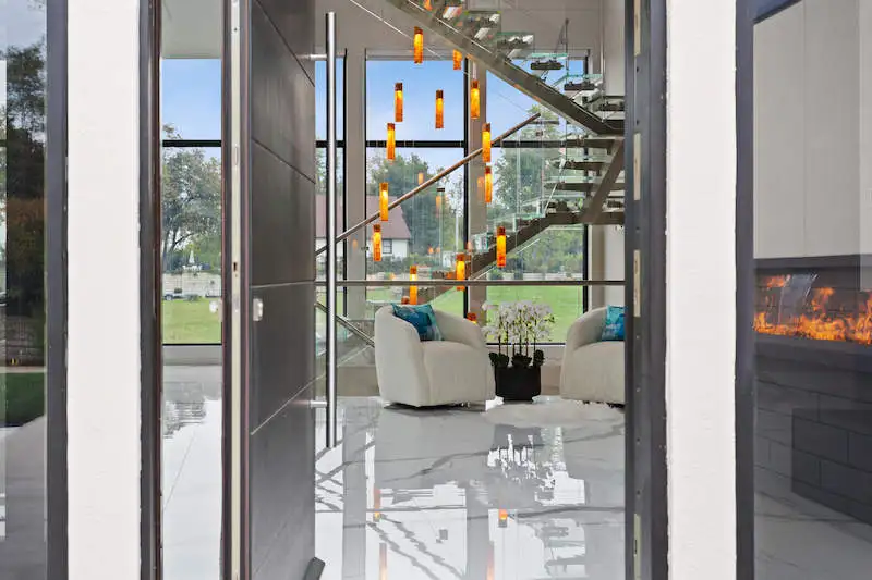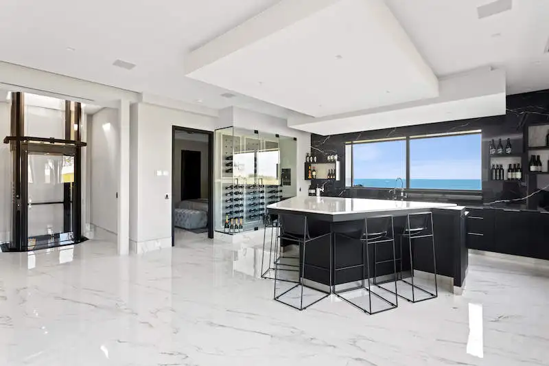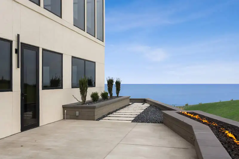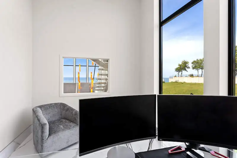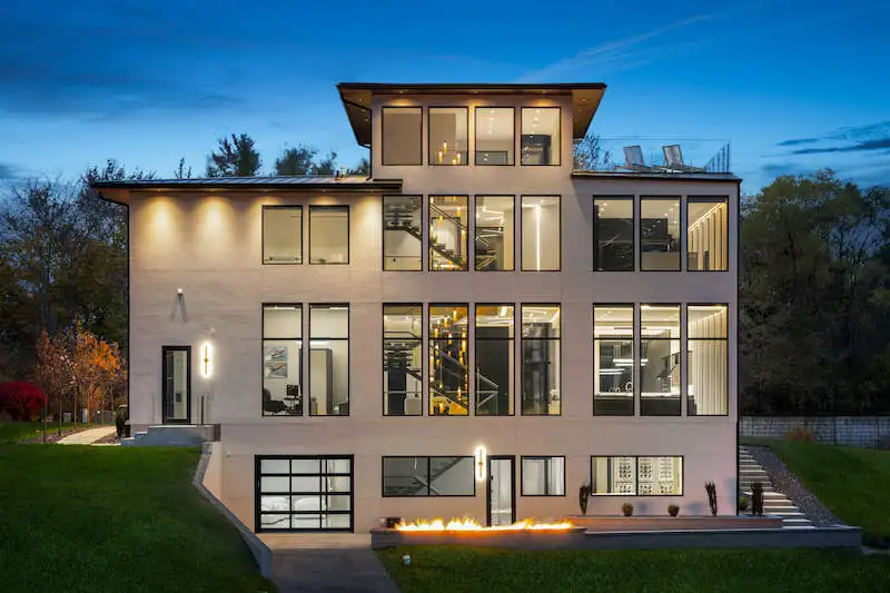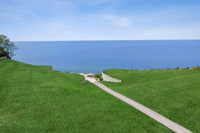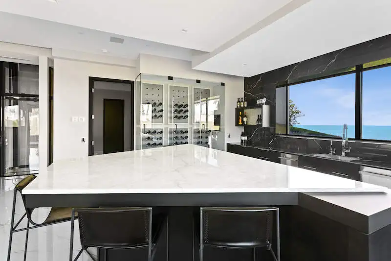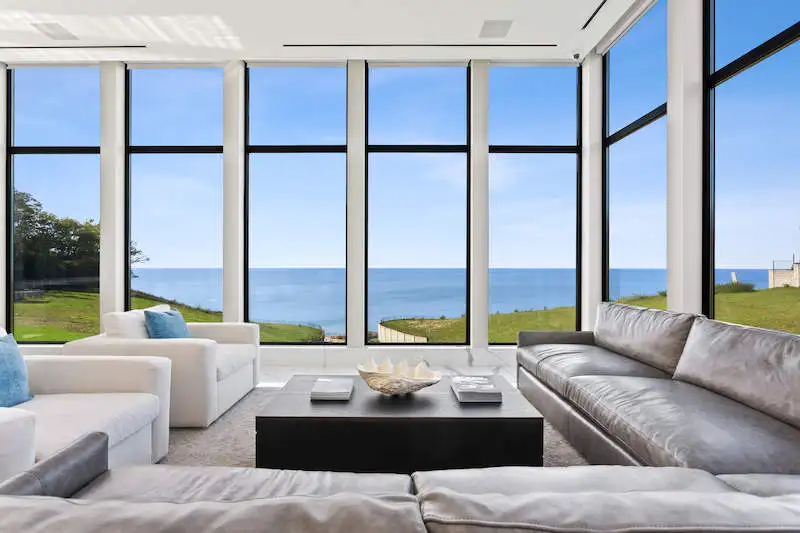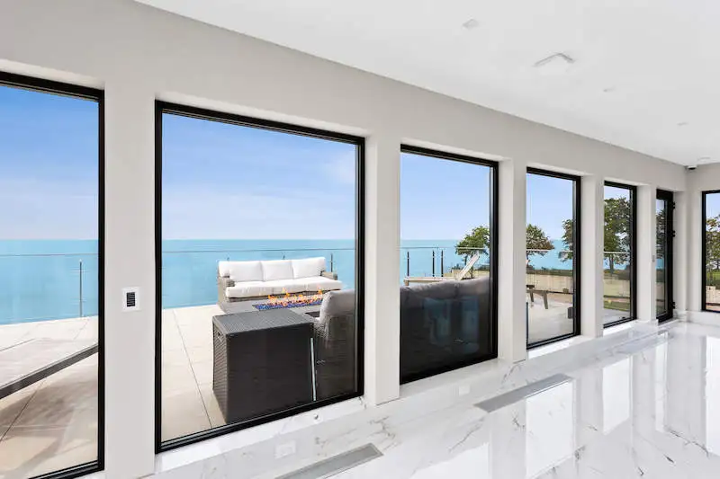 Modern home with 8,000 SF of dramatic spaces that focus on clean lines, sleek surfaces & panoramic Lake Michigan views. 4 levels with floor to ceiling windows & heated Marble floors. Impressive custom glass staircase paired with glass elevator for access to all levels. Featuring breathtaking chefs' kitchen with 2021 Jennair & sub-zero appliances & beautiful White quartz countertops. Impressive Primary suite with incredible lake views gorgeous Marble fireplace, wrap around windows with sitting area. Striking ensuite with Marble walk in spa shower & custom soaking tub handmade in Italy. 3 large guest suites. Roof top deck with hot tub. Lower-level home theater with advanced viewing screen/audio system. Bar with humidor, custom wine cellar, light up onyx bar & kegerator.