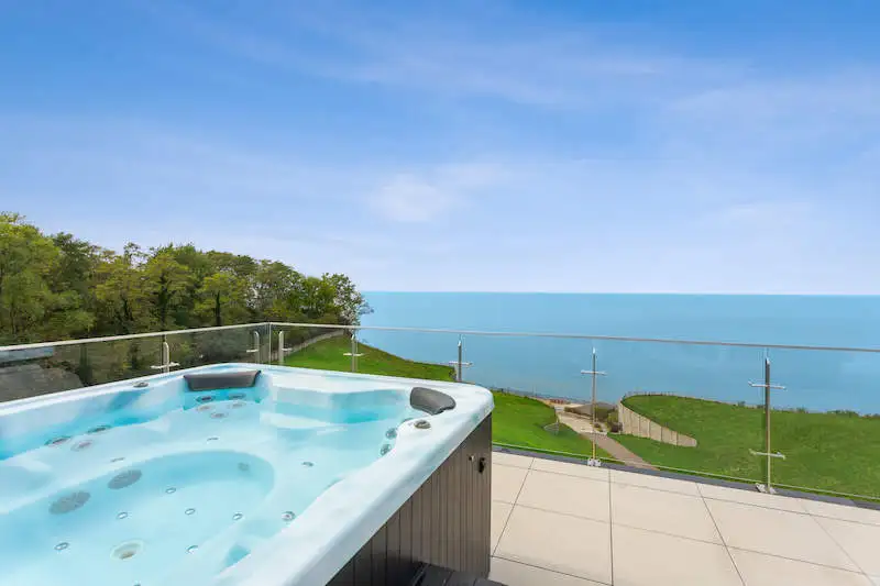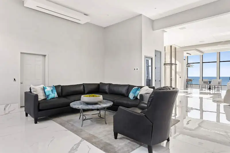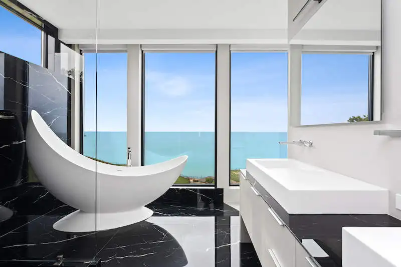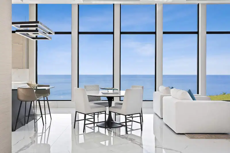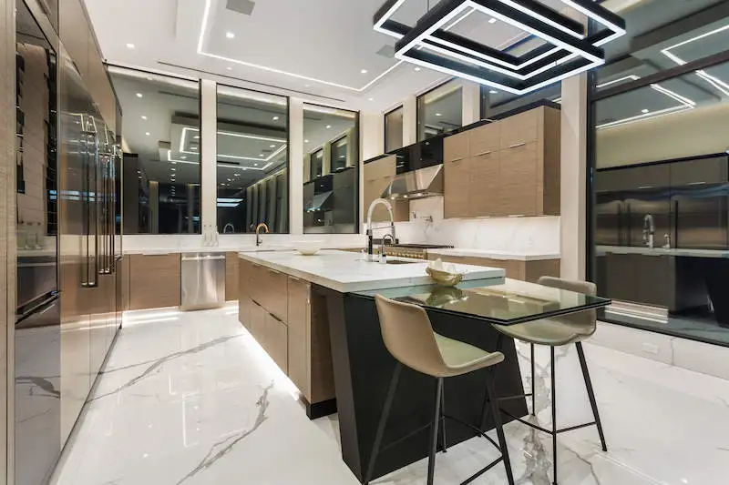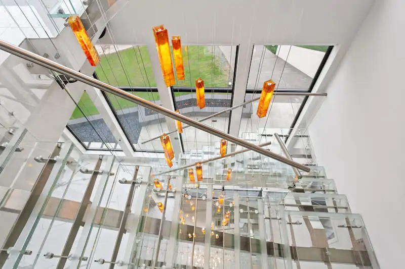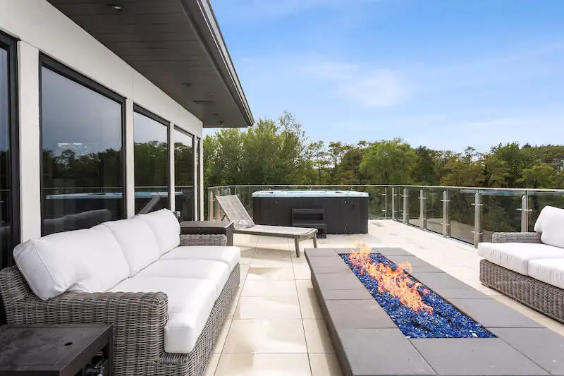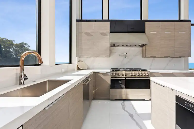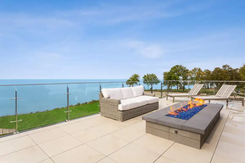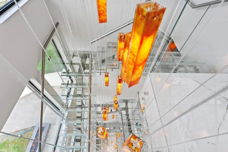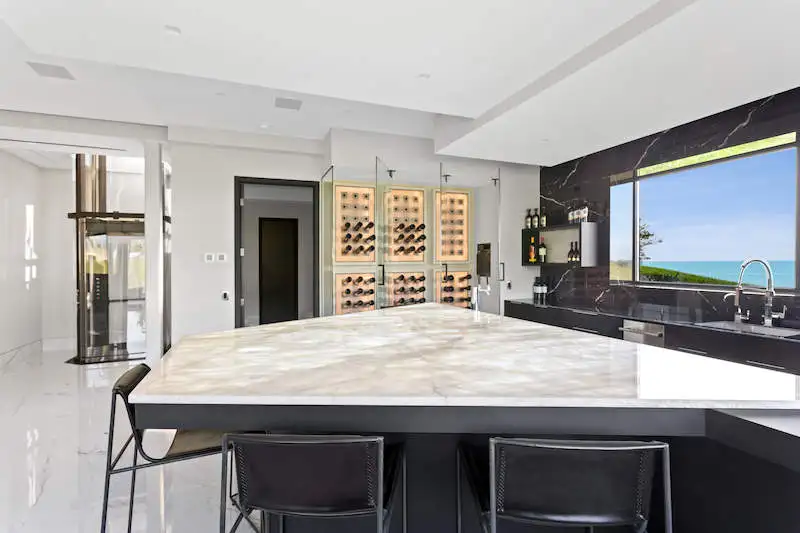 Modern home with 8,000 SF of dramatic spaces that focus on clean lines, sleek surfaces & panoramic Lake Michigan views. 4 levels with floor to ceiling windows & heated Marble floors. Impressive custom glass staircase paired with glass elevator for access to all levels. Featuring breathtaking chefs' kitchen with 2021 Jennair & sub-zero appliances & beautiful White quartz countertops. Impressive Primary suite with incredible lake views gorgeous Marble fireplace, wrap around windows with sitting area. Striking ensuite with Marble walk in spa shower & custom soaking tub handmade in Italy. 3 large guest suites. Roof top deck with hot tub. Lower-level home theater with advanced viewing screen/audio system. Bar with humidor, custom wine cellar, light up onyx bar & kegerator.