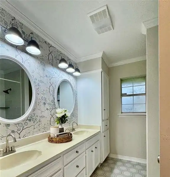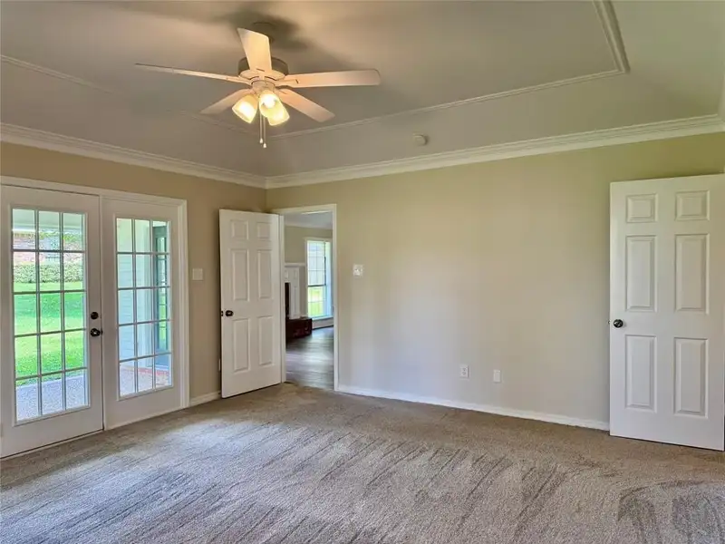 - Master bath with double vanity and soaker tub