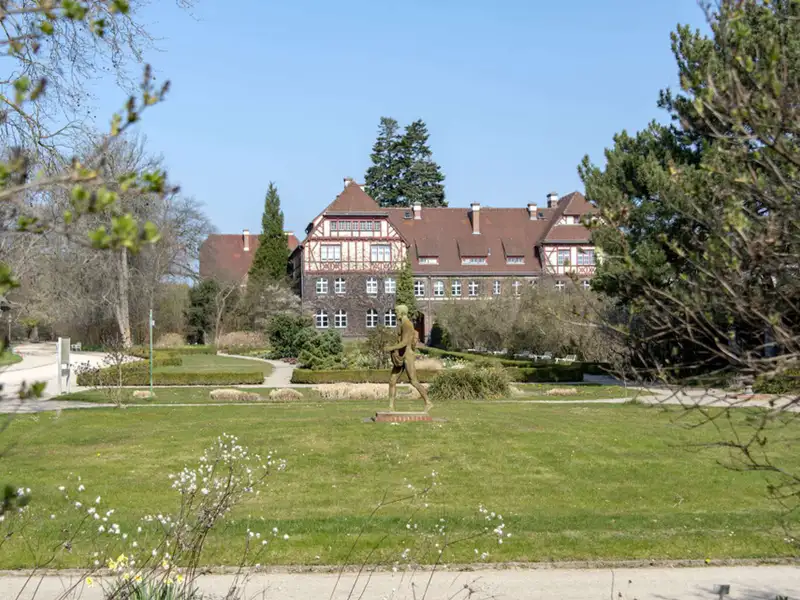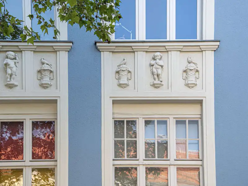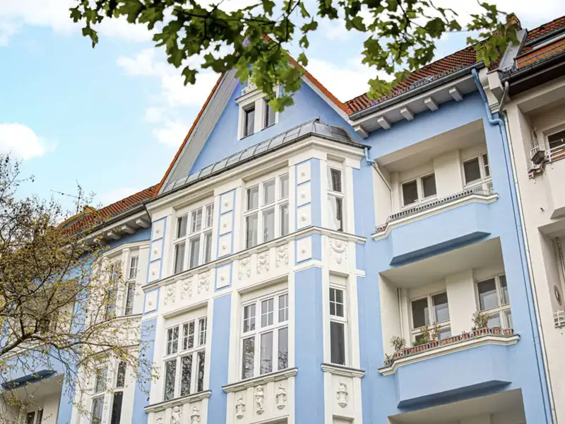 • Historic Gründerzeit building with sky-blue façade