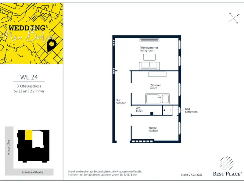 - 57.22 m² living space