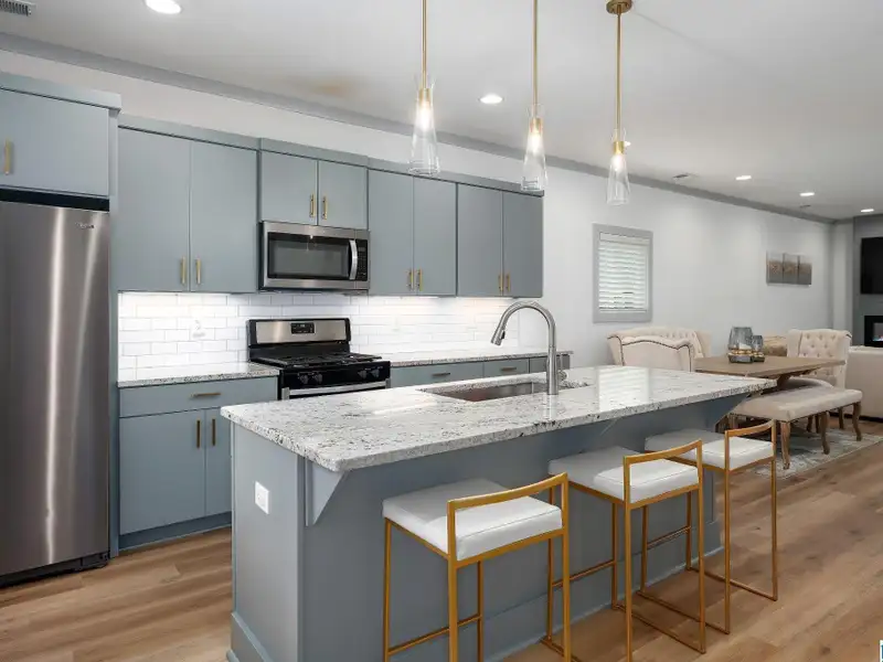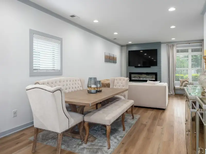- Open-concept living with electric fireplace