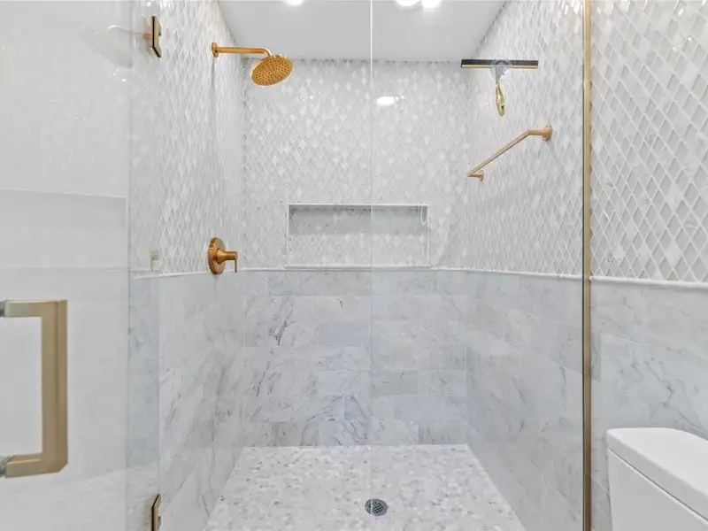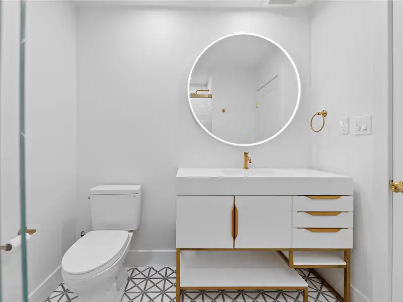 - Renovated bathrooms with marble tile and lighted mirrors