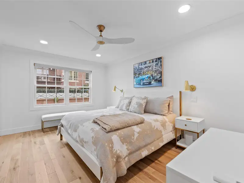 - Solid white oak matte wood flooring throughout