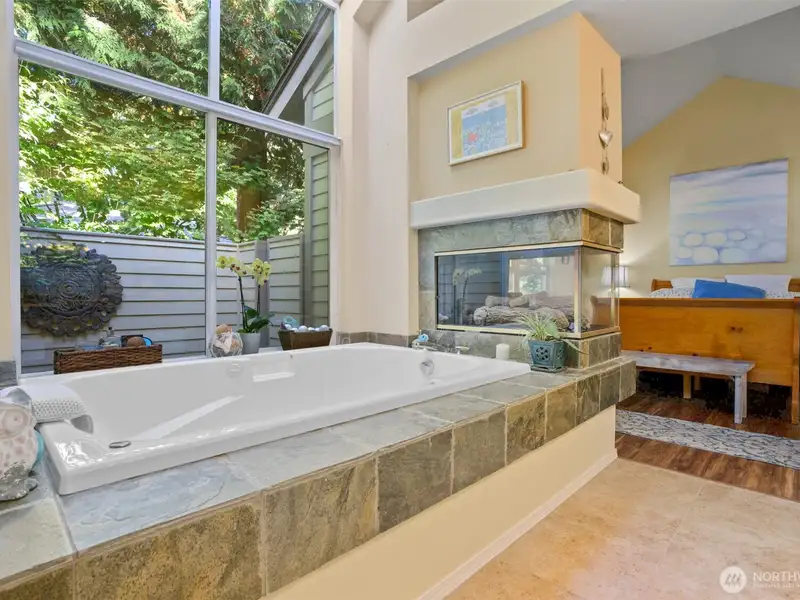 - Master suite with soaking tub and fireplace