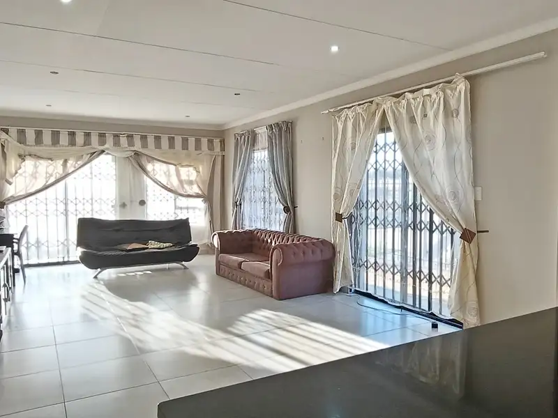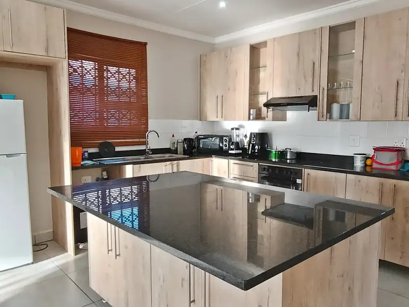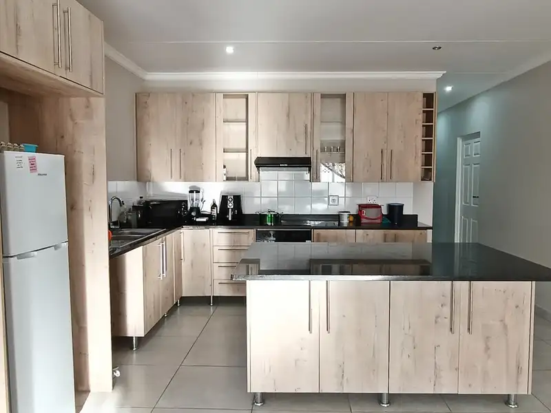This stunning family home is the perfect blend of modern style and comfort, offering everything a family could desire. Step into the spacious, open-plan living room that is tiled throughout, providing a seamless flow from the living area to the heart of the home—the kitchen. Every woman's dream, this gourmet kitchen boasts ample cupboard space, granite countertops, and a central island for both meal prep and casual dining. The home features 4 generously sized bedrooms, each with built-in cupboards, offering plenty of storage space. The master suite is a true retreat, complete with a luxurious en-suite bathroom and walk-in closet. An additional 2 full bathrooms ensure that the entire family is catered to. Outside, the property is fully paved, offering low-maintenance living, and includes a double automated garage for secure parking. The location offers the ultimate convenience, with local shopping malls, schools, and petrol stations all within close proximity. This home ticks all the boxes for family living. Don’t miss out—act quickly before it's too late!