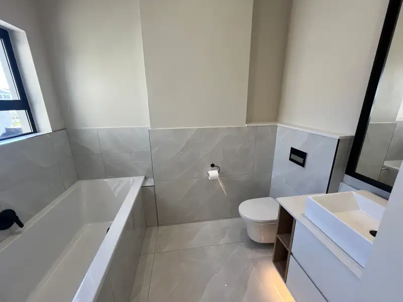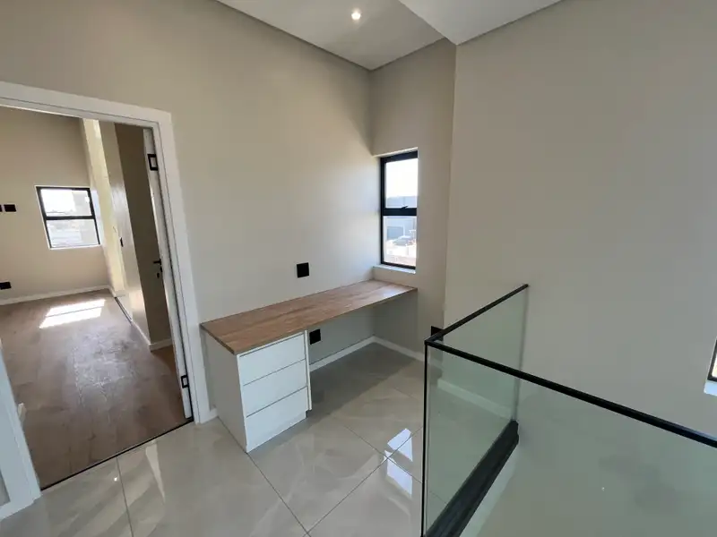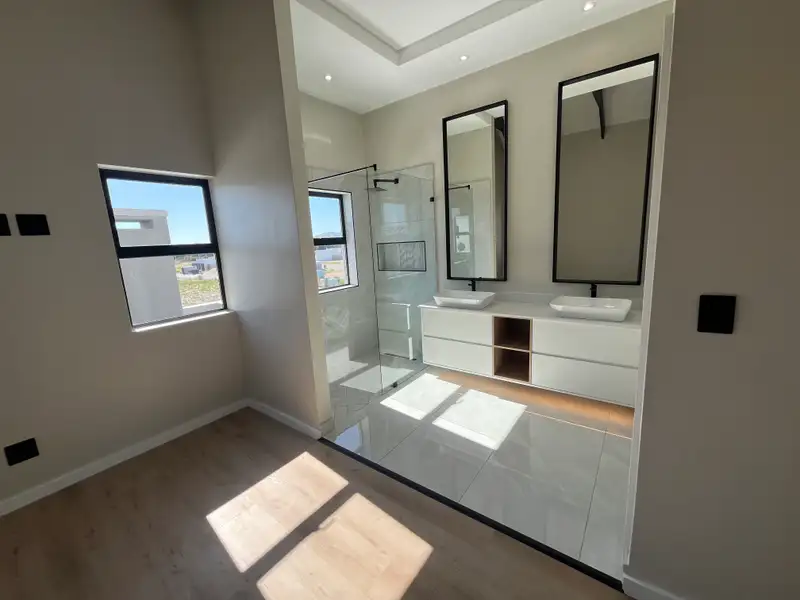 Covering 270 sqm on a 300 sqm plot, this 3-bedroom residence includes en-suite bathrooms in each room for maximum convenience. Each spacious bedroom accommodates a king-size bed and offers cozy work-from-home corners. The 3.5 bathrooms are tastefully designed, and a heat pump for the geyser provides energy-efficient hot water.