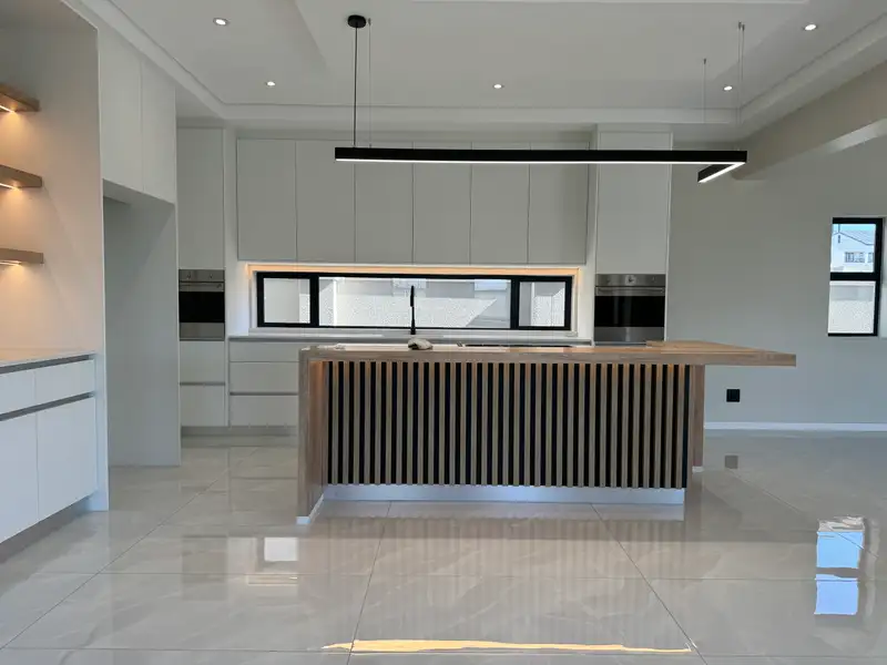 Energy efficiency is a key feature, with triple insulation in the roof, double-glazed aluminum doors and windows, and LED lighting throughout, reducing heating and cooling needs. A water circulation pump ensures instant hot water, while a 10-litre Prisma under-counter geyser in the kitchen offers immediate hot water. These energy-efficient elements help lower utility costs, creating a comfortable environment year-round.