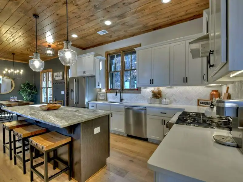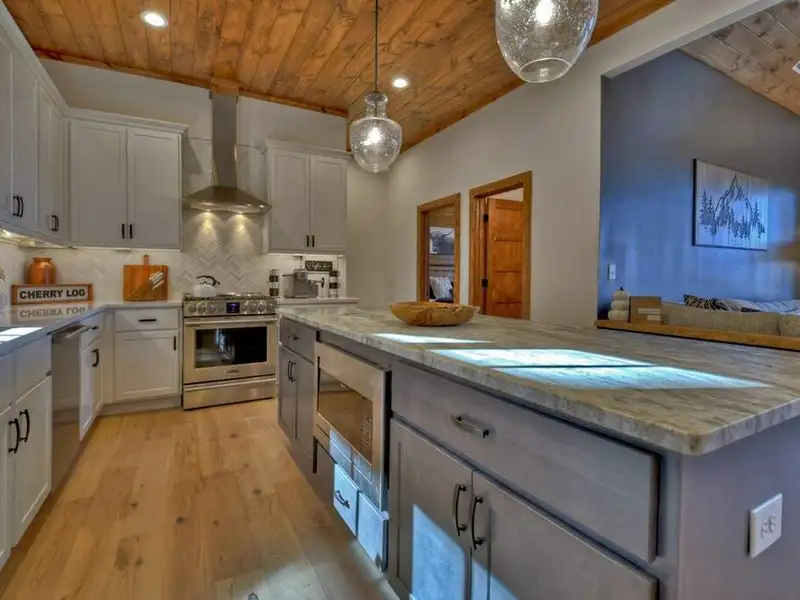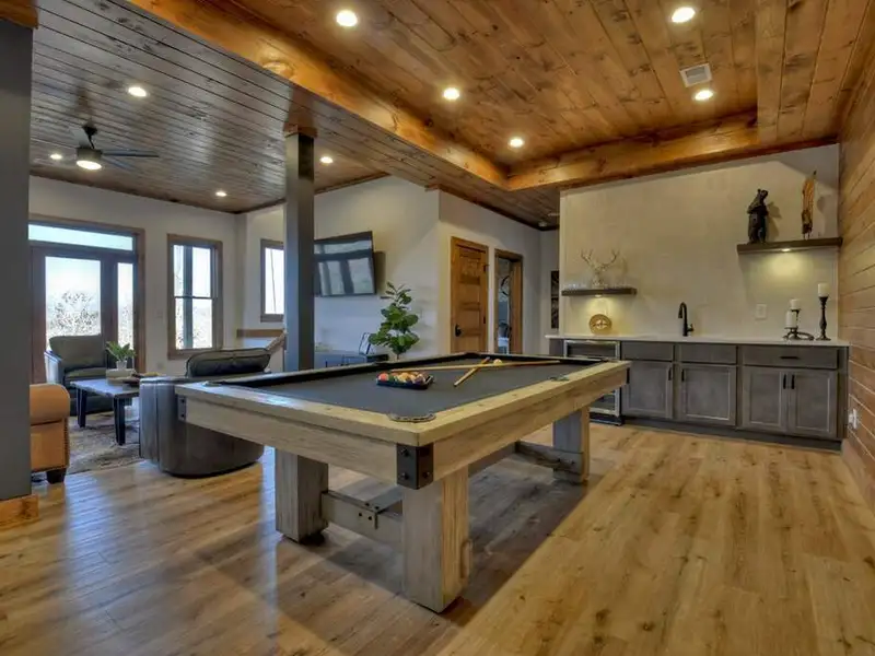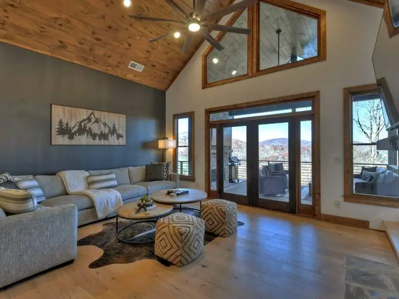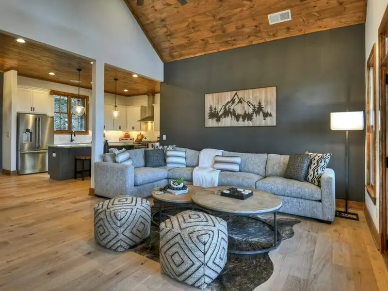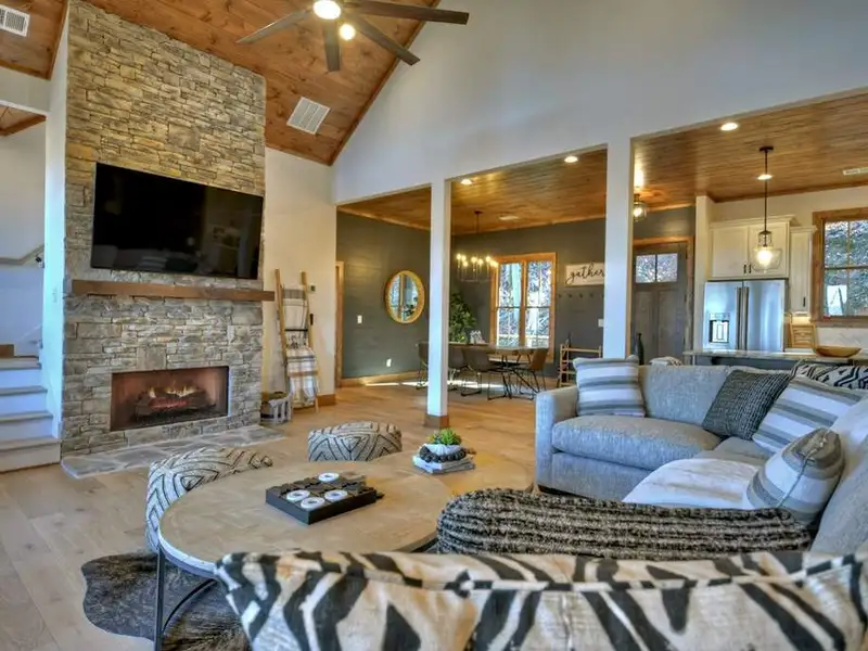- Open floor plan with vaulted ceilings