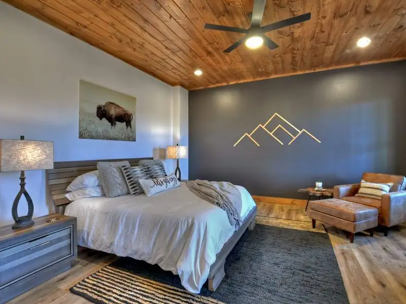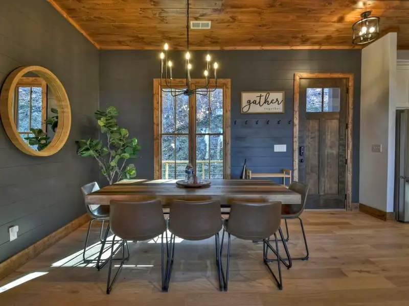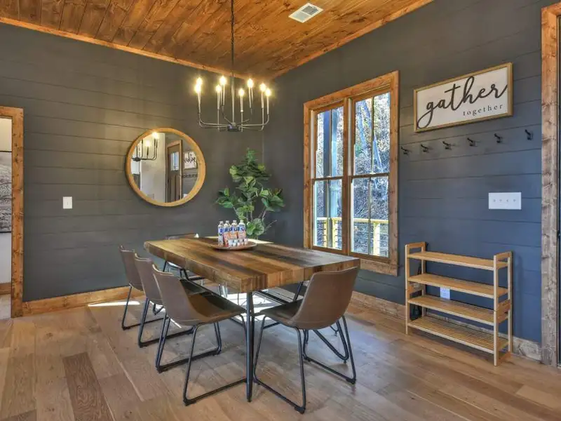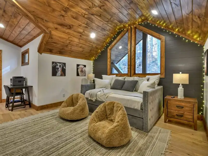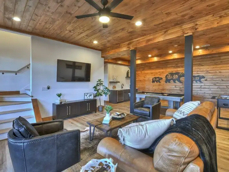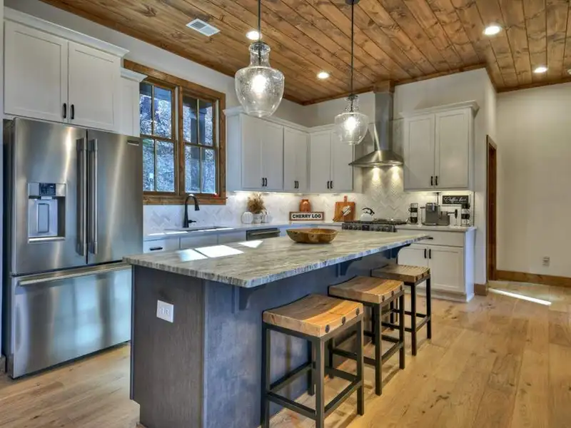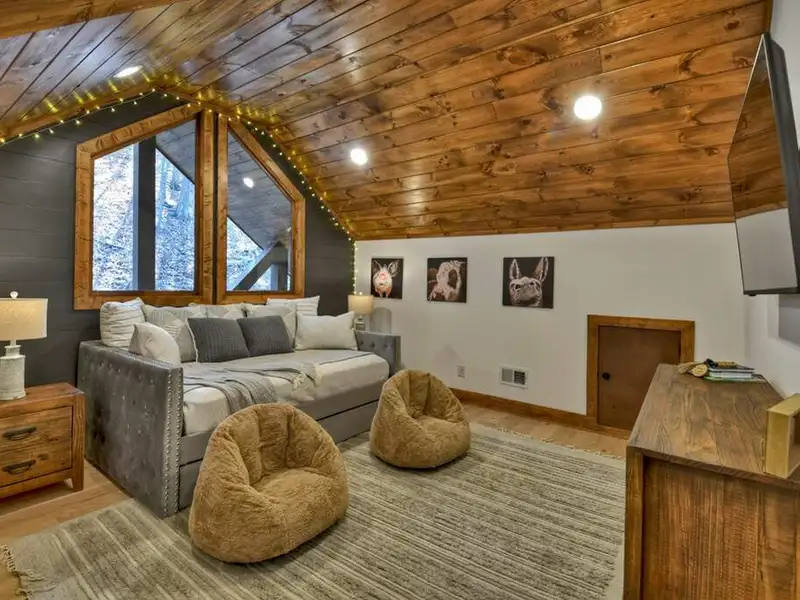 - Open floor plan with vaulted ceilings