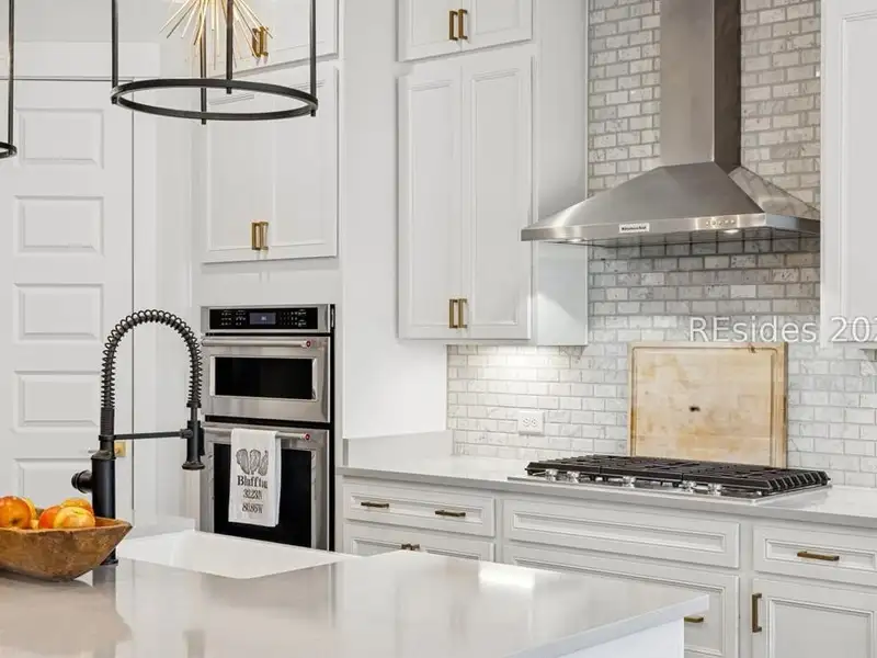 - Gas range and sleek lighting