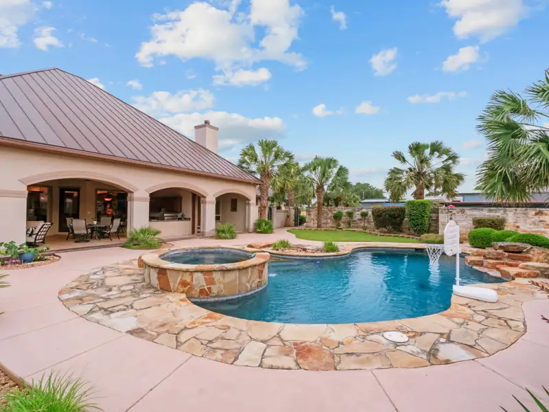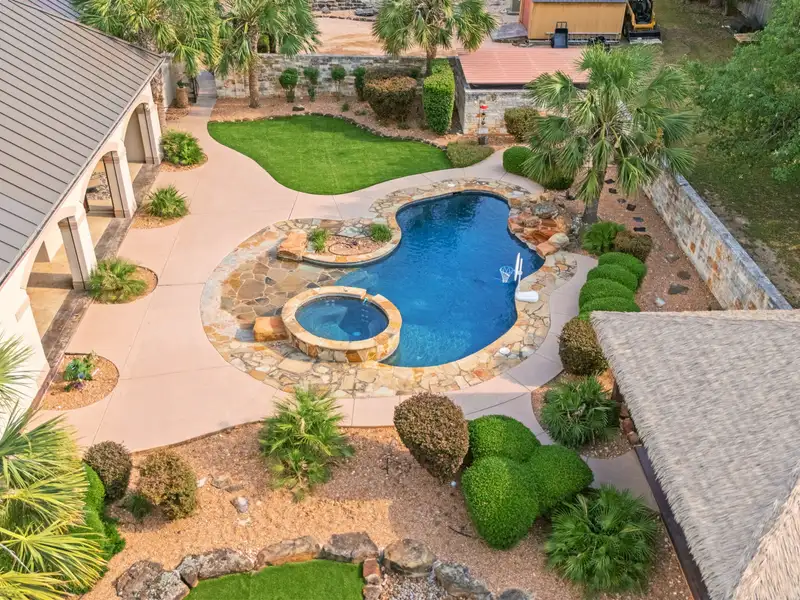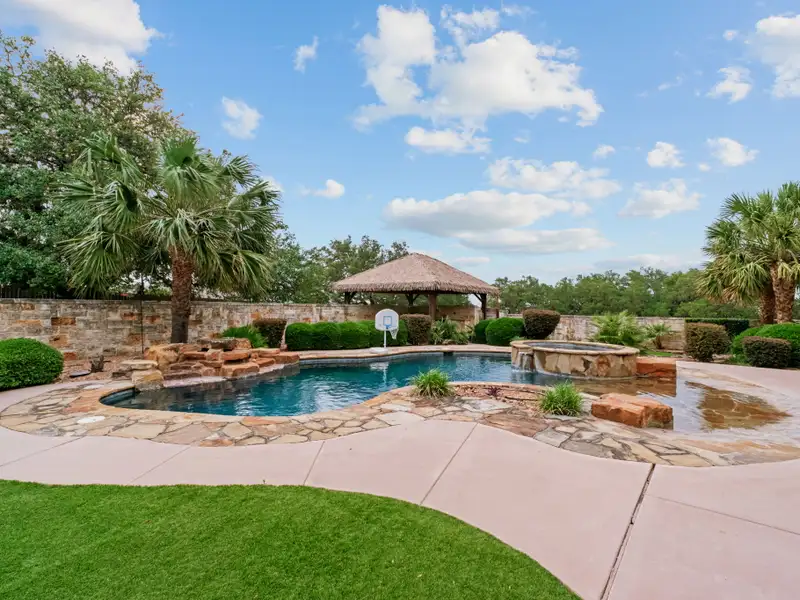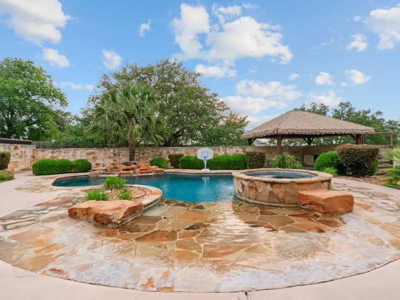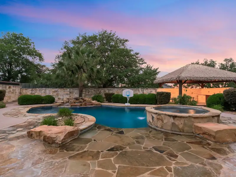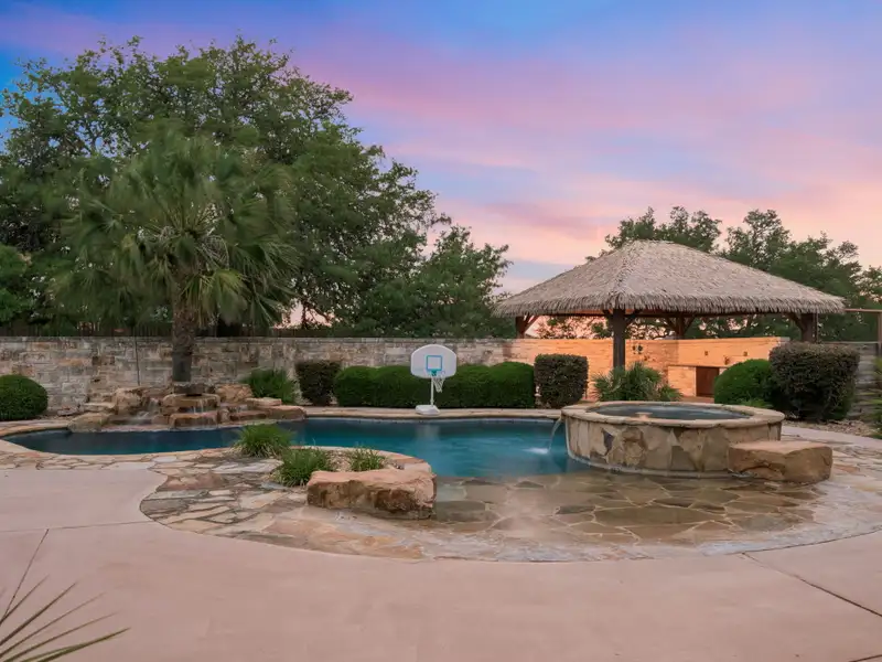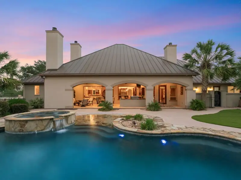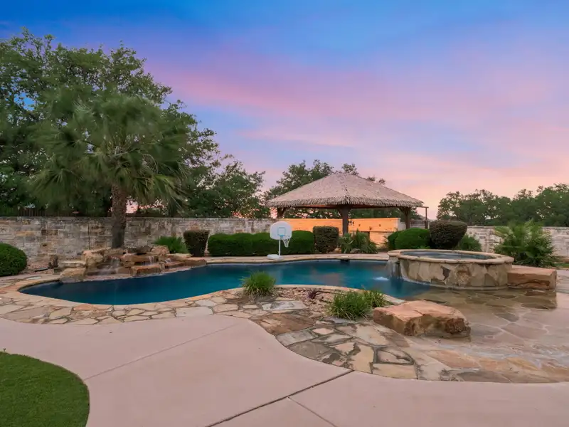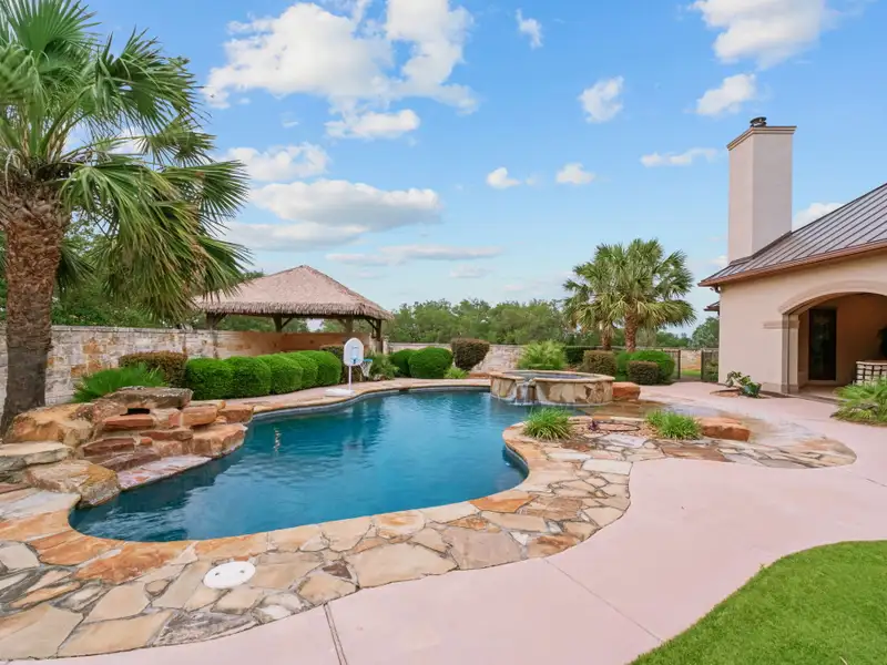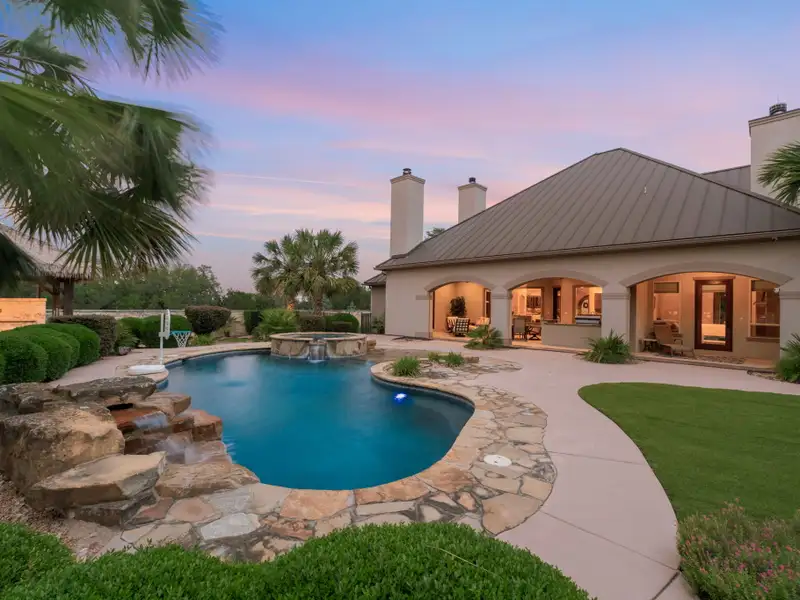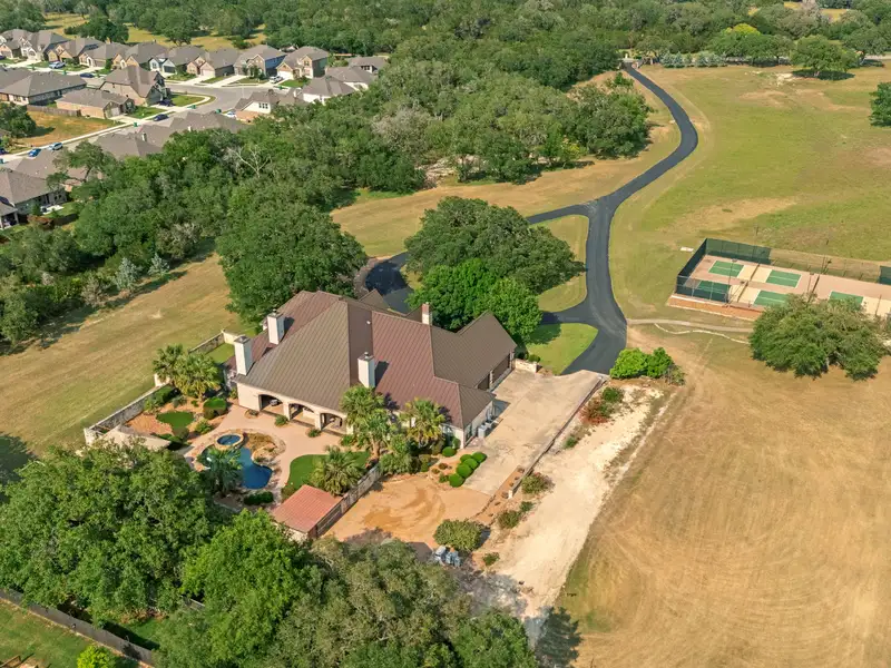 Welcome to this Texas Hill Country ~4,500 square foot resort living masterpiece, crafted by Cadillac Homes in 2009. Nestled on 9 tranquil acres shared with deer and majestic oaks, this gated retreat offers luxury and privacy. Relax on the screened porch by the sparkling pool, or in the soothing hut tub, and entertain on three private pickle ball courts- perfect for gatherings under starry skies. Enjoy dinner on a summer evening with your family in the outdoor kitchen and outdoor living area with fireplace. With custom arched stonework and soaring ceilings, this architectural gem blends timeless elegance and comfort. The gourmet kitchen has a pot filler, warming drawer, double ovens, gas cooking, granite island, and large walk in pantry. The en-suite master bedroom complete with a fireplace and outdoor shower access has a spa like bathroom with a separate shower and jacuzzi tub. This stunning estate offers two spacious secondary bedrooms each with it's own bathroom, a custom library with beautiful hardwood floors and paneling, an exercise room, wet bar, and so much more! No city taxes! 3 car garage. Just minutes from downtown Boerne, Geneva school, and San Antonio, your Hill Country sanctuary awaits! Schedule your private showing today. - 12/8/2025 8:16:36 PM