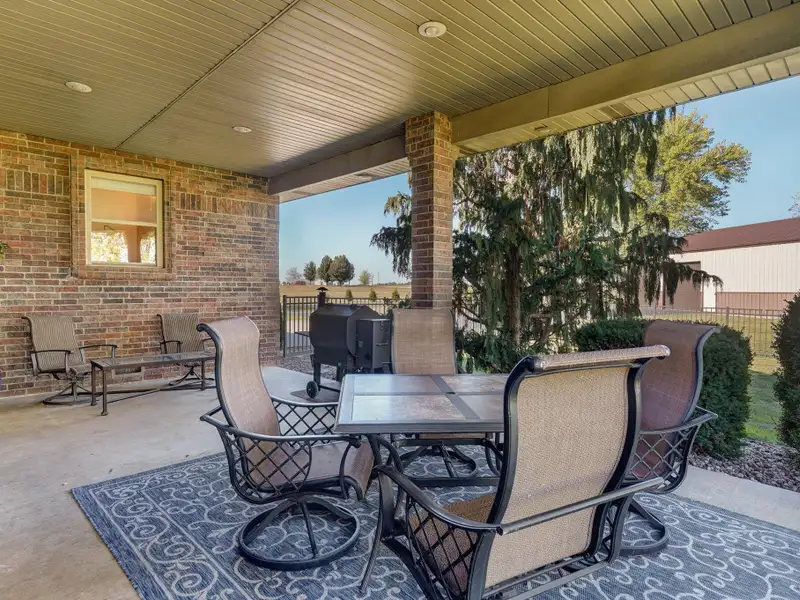 - Covered back porch with farm views