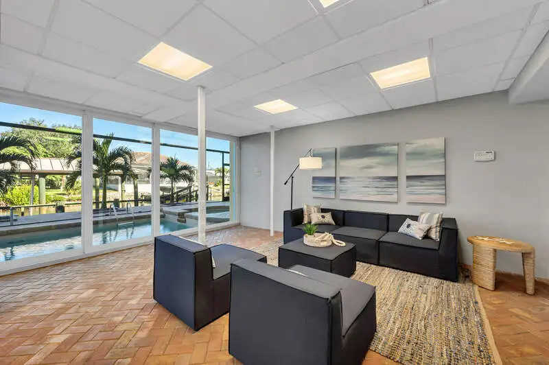 **Some rooms in this home have been now virtually staged and previously it was staged and those photos are listed as well, but the property is now vacant and easy to show.** Welcome to **Dolphin Cove**, a rare and exclusive **gated waterfront community** of only 12 residences, offering **direct Gulf access** just minutes from your back door. This exceptional 4-bedroom, 4-bathroom home features over **4,100 sq ft of living space** and is perfectly designed for both luxury living and effortless entertaining. Boating enthusiasts will appreciate the **private dock with 10,000 lb. lift**, **no-bridge access**, and fast, deep-water passage to the Gulf of Mexico-perfect for enjoying world-class beaches, pristine water, and the ultimate Southwest Florida boating lifestyle. This three-story coastal residence features an open floor plan, volume ceilings, hardwood and porcelain tile flooring, and elegant architectural details including arches and a sweeping staircase. The **third-floor primary suite** offers a private retreat with an en-suite bath, bidet, soaking tub, walk-in shower, and oversized custom closet. Enjoy peaceful mornings and sunsets from the screened private balcony. A den on this level also opens to a covered porch, with elevator access to all three floors. The **second floor** showcases a spacious kitchen with granite countertops, an island, and a walk-in pantry, along with 3 additional bedrooms and 2 full bathrooms, including one en-suite. The formal living room features vaulted ceilings and flows seamlessly into the dining room and family room, making the home ideal for gatherings. On the **first floor**, you'll find over **1,000 sq ft** of flexible space-perfect for a gym, entertainment area, hobby room, or guest space-along with a full bathroom. The lap pool and spa are enclosed in an impressive three-story screened lanai, accessible via the spiral staircase from the family room above. Additional features include a **whole-house generator**, **3-zone AC**, two garages, with space for 3-4 cars, plus workshop area, and abundant storage. Located minutes to the Gulf of Mexico, Mercato, top-rated schools, dining, shopping, and a short drive to RSW International Airport, this home offers the perfect balance of **luxury, convenience, and true coastal living**. Experience the best of Naples in Dolphin Cove-your private waterfront oasis with direct Gulf access and unmatched lifestyle amenities.