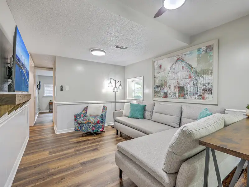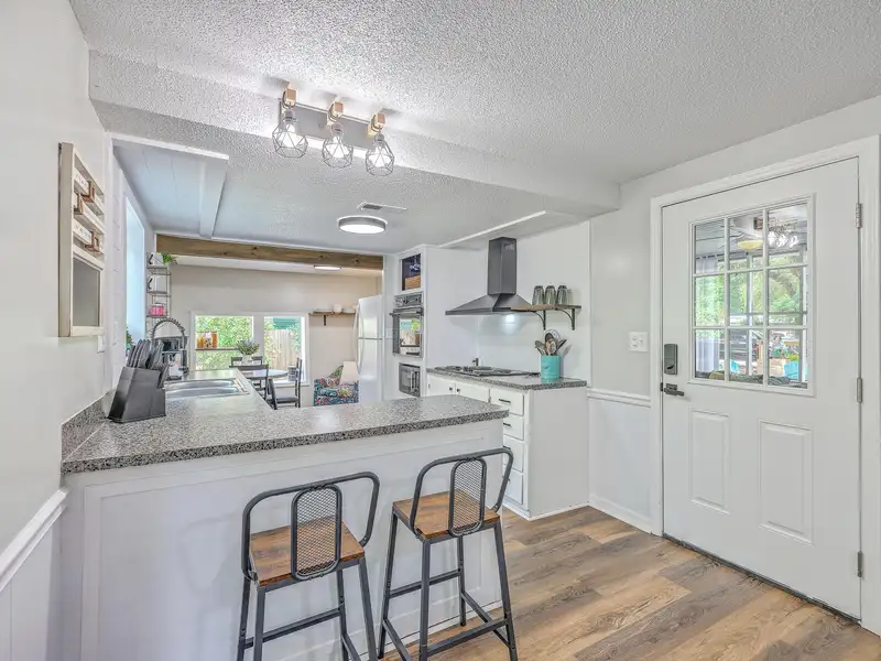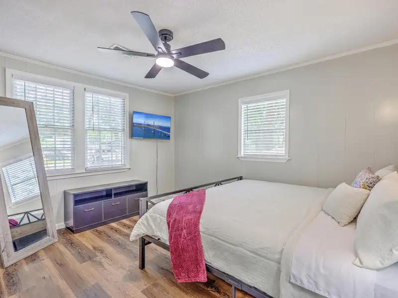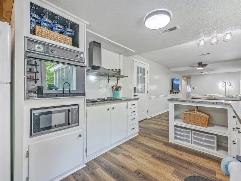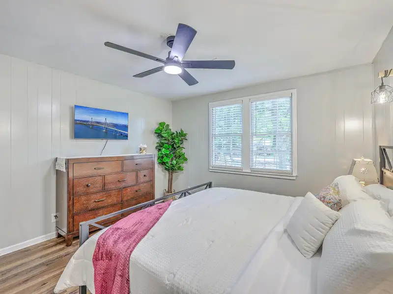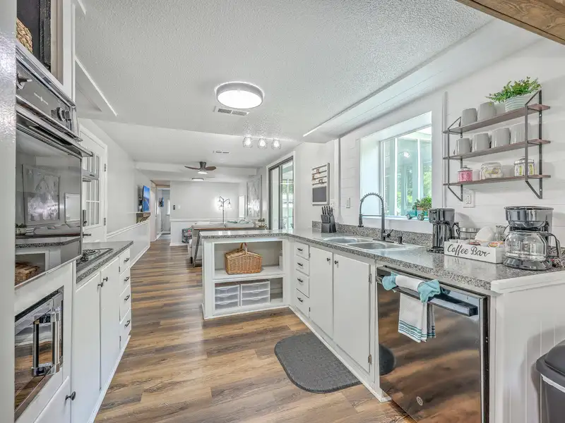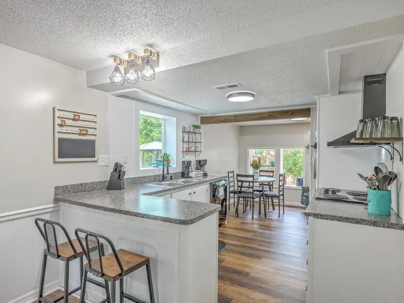 Inside, you'll find an open layout with natural light flooding the main living area, walls in a soft color palette, modern light & fan fixtures, and new LVP flooring throughout. The kitchen, stylishly designed, becomes the perfect spot for casual dining or weekend entertaining, not to mention the cozy reading nook. The three bedrooms and two full bathrooms are designed to accommodate both family and guests comfortably.