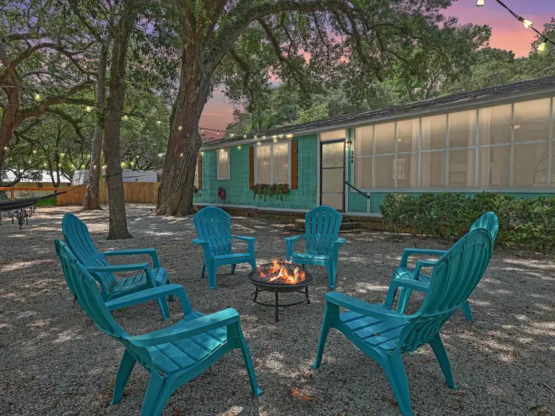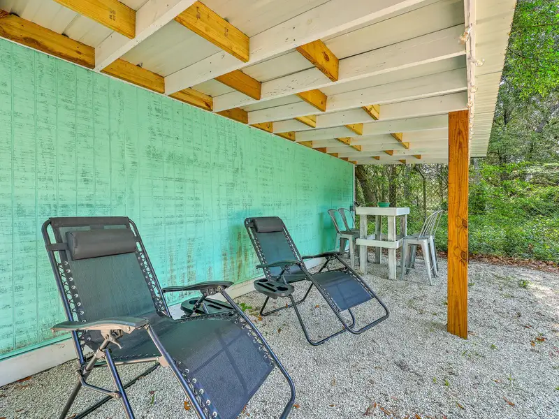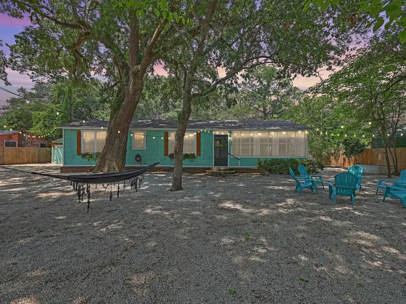 Shaded by beautiful grand oaks, this charming home comes with a private neighborhood beach, dual porches, lake views, a remodeled interior, a covered hot tub, a 30-amp RV hook-up, outdoor grilling station with sink, a large shed, a new fence and more! It is presently making income and guests love it! Furnishings & hottub convey w an acceptable offer. This could be your new home or next business! Imagine unwinding in a cozy hammock under a canopy of oaks, or lounging on the screened porch with the electric fireplace glowing, the breeze blowing and your favorite movie on the TV screen! View the lake from the back porch, clean your fresh catch in the outdoor sink and cook them up on the grill! Enjoy the sunset from the hot tub or stream shows on the outdoor projector. One thing that setsthis apart is the private beach at the end of the lane just a few steps away. How refreshing! This property screams RELAX!