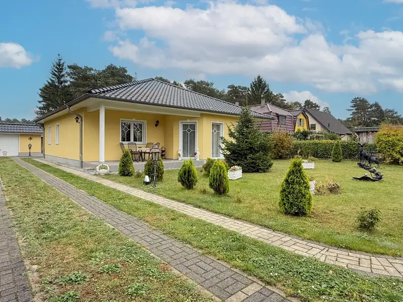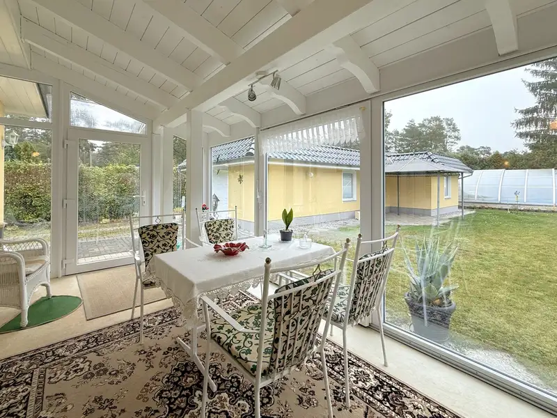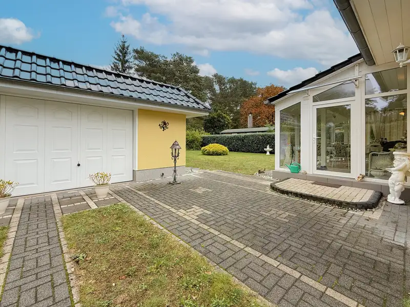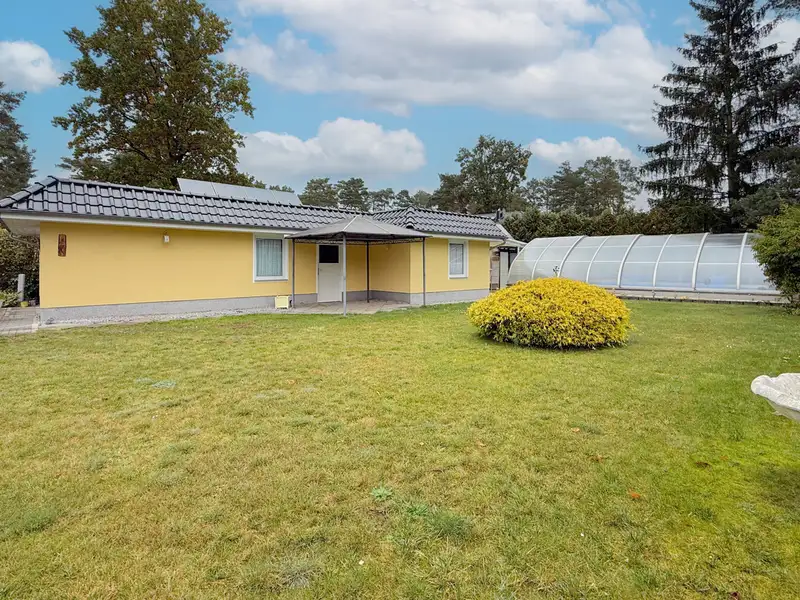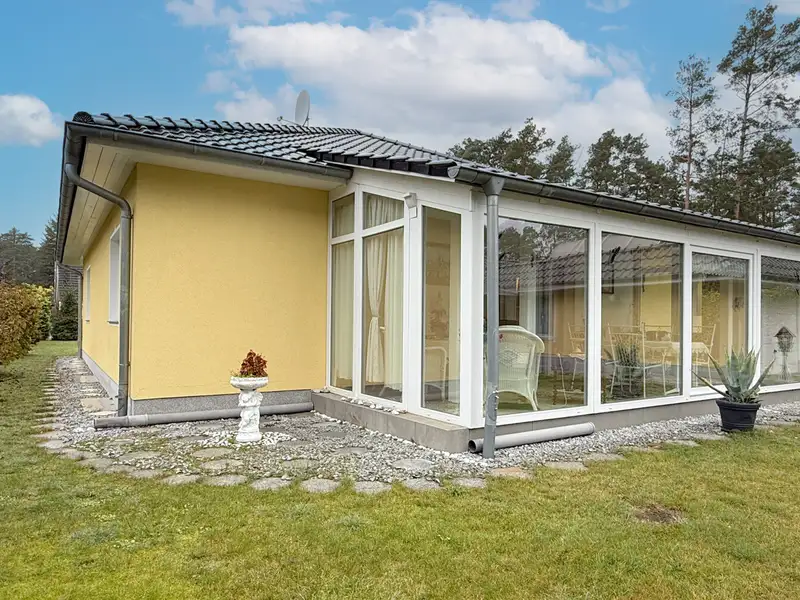 This modern residential bungalow from 2012 combines timeless architecture, high-quality furnishings and exceptional living comfort. As soon as you enter via the light-flooded conservatory with an electric fireplace, you can feel the inviting atmosphere of this house - a home that harmoniously combines style, security and functionality.