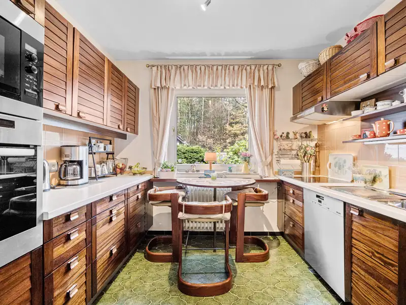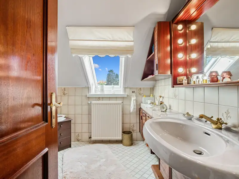 The family home is in a well-kept condition and reflects the value of durable construction. The furnishings can be classified as normal and offer a solid basis for your own modernization wishes. In 2010, the roof was re-roofed, the roof windows renewed and copper guttering installed. The entrance area was also redesigned with high-quality paving. The attractive entrance area with new paving conveys a "warm welcome".