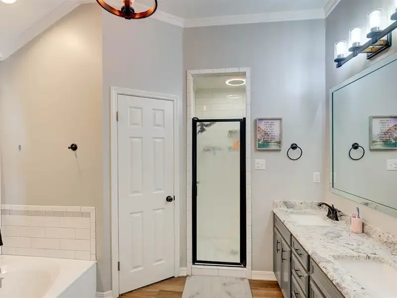 - Large garden tub in primary bath