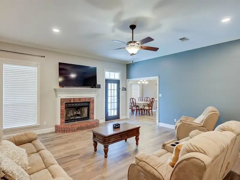 - Gas log fireplace in living room