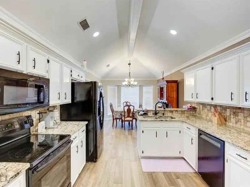 - Granite countertops in kitchen
