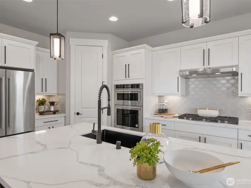 - Open kitchen with quartz counters