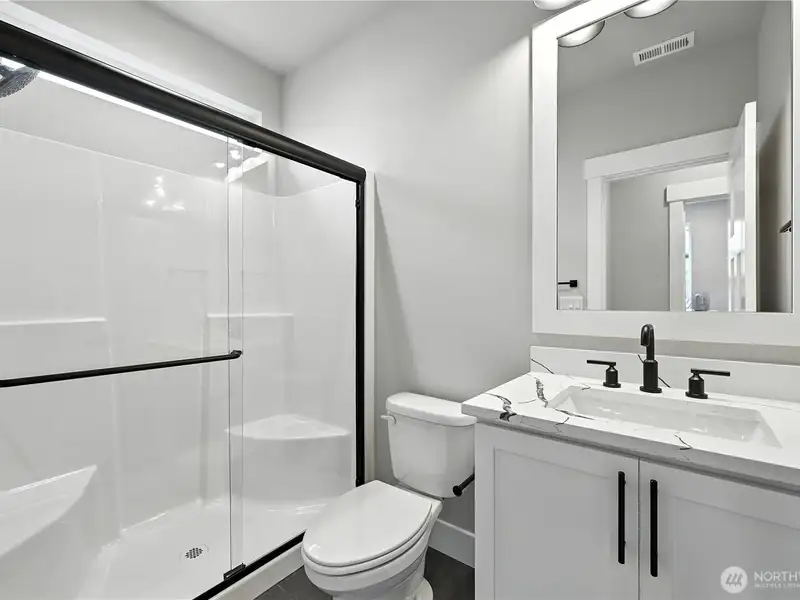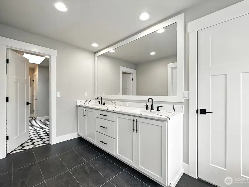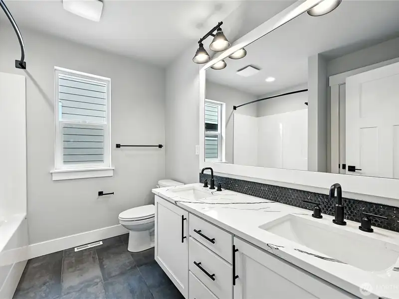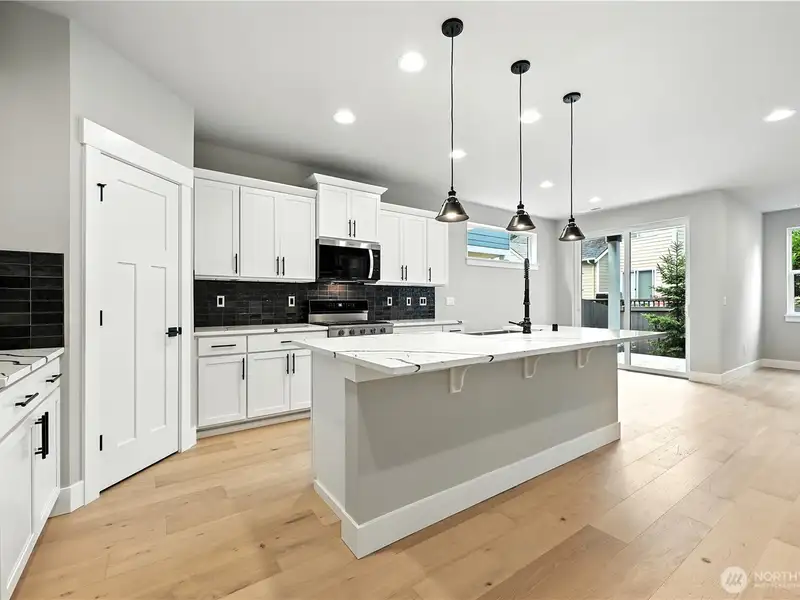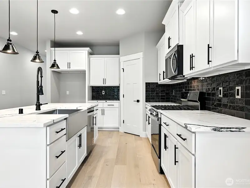 - Quartz countertops and white cabinetry
