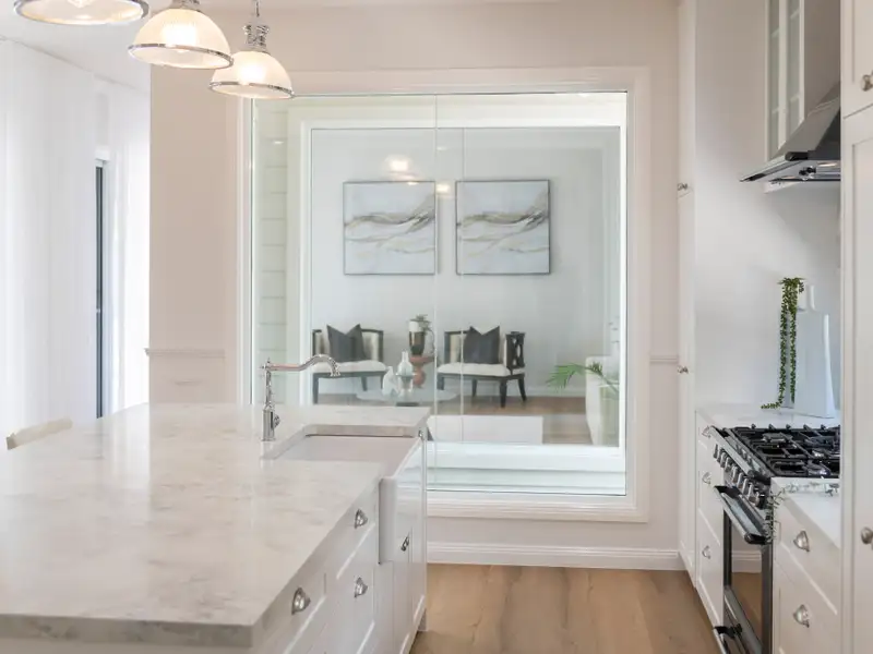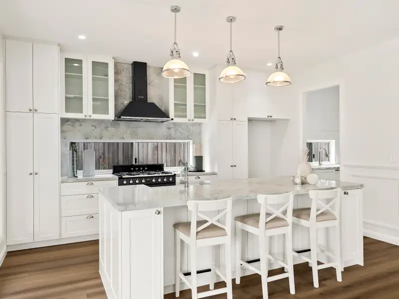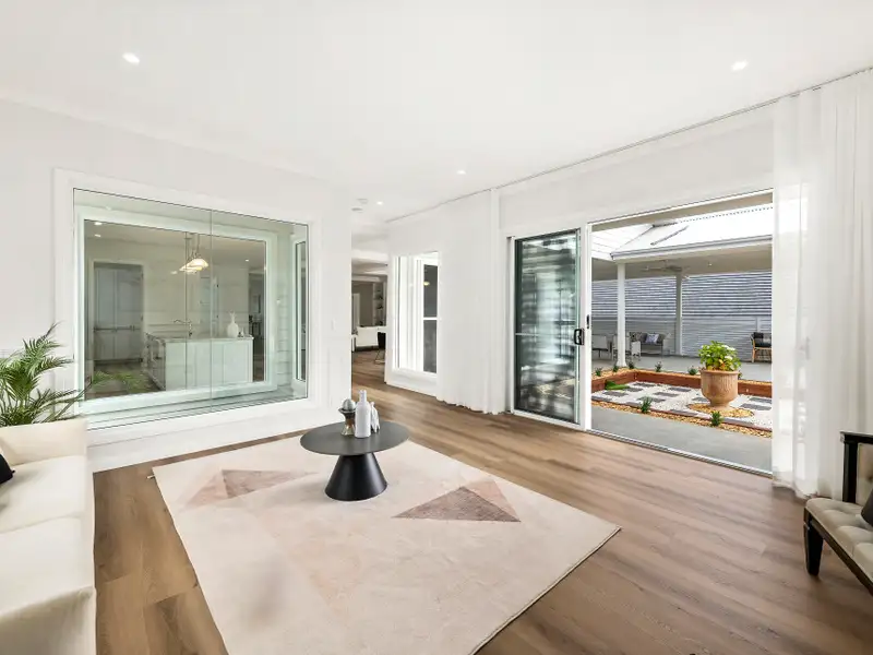 Designed for uncomplicated living, the predominantly single-level floorplan delivers both openness and adaptability, with multiple breakout zones and generous proportions. The heart of the home centres around the bespoke shaker-style kitchen, where 40mm stone benchtops, display cabinetry, SMEG appliances, and a fully equipped butler's pantry elevates everyday practicality and entertaining alike.