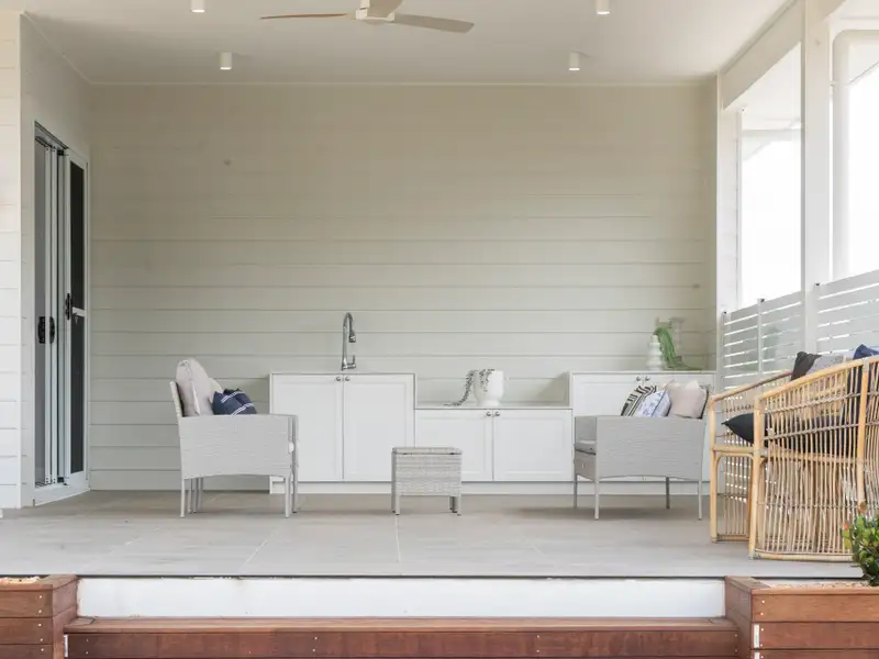 The refined open-plan living and dining areas flow effortlessly to the alfresco terrace. Here, the north-easterly aspect fills the home with morning light and opens to a series of thoughtfully designed outdoor spaces - from the wet bar and BBQ zone to the sculpted fire pit area - creating an environment perfect for relaxation, connection, and year-round enjoyment.
