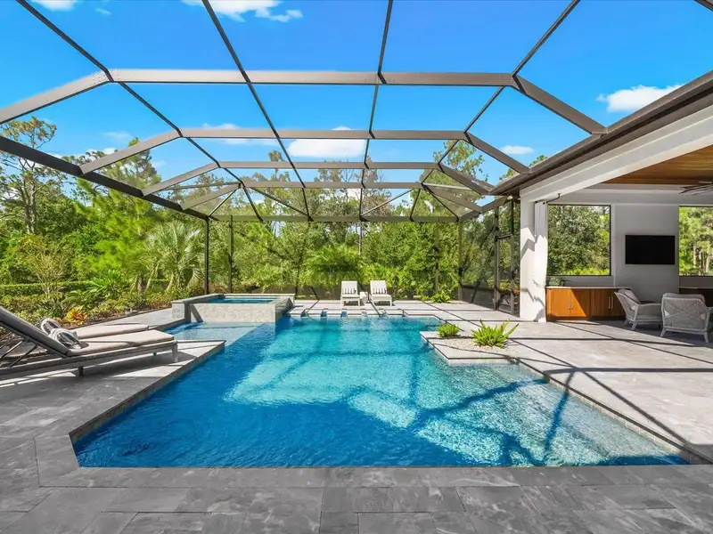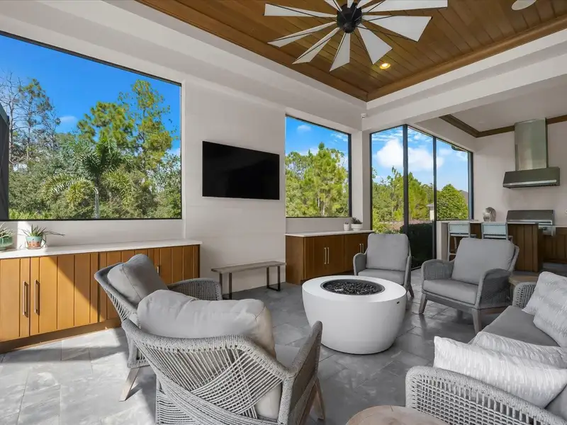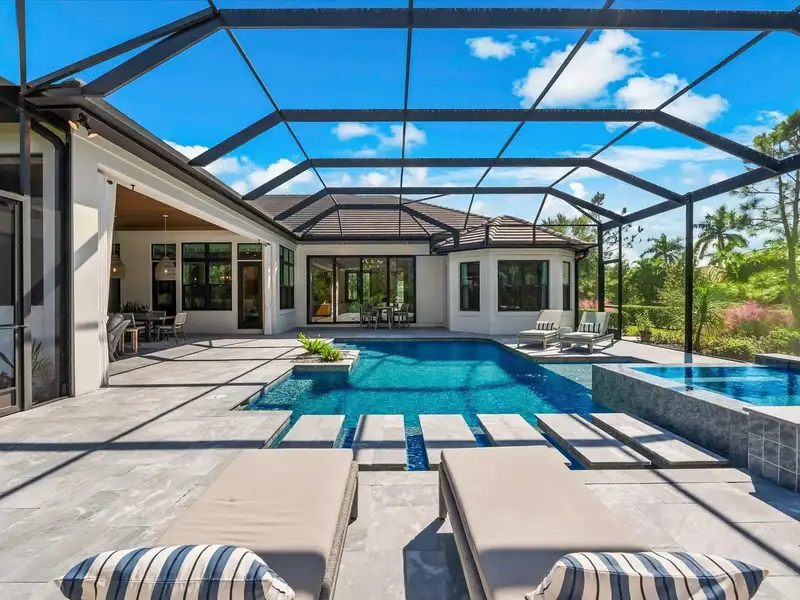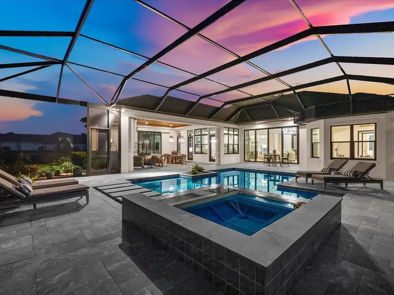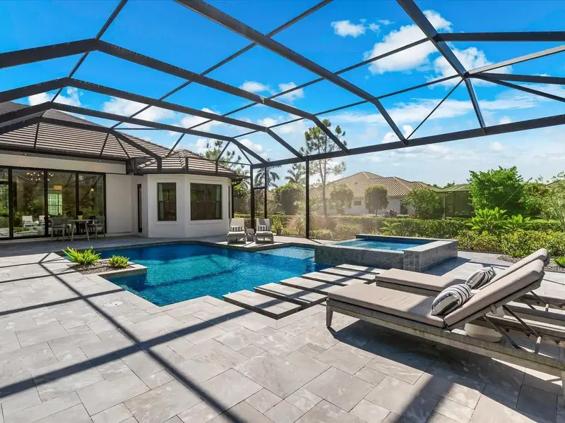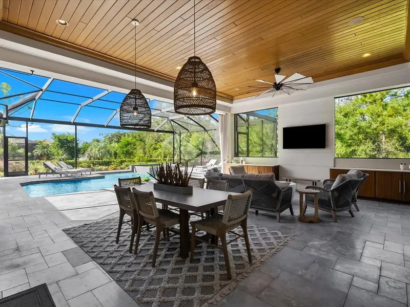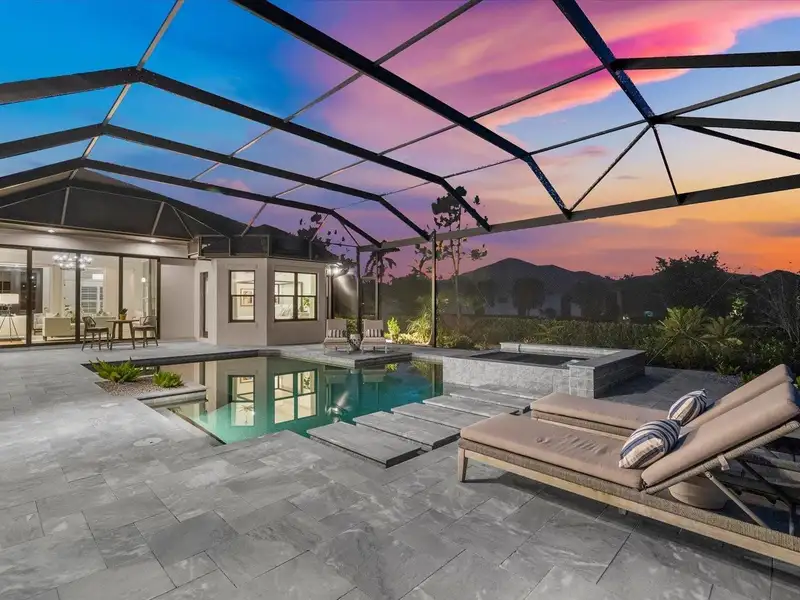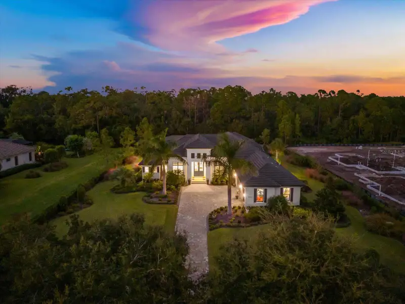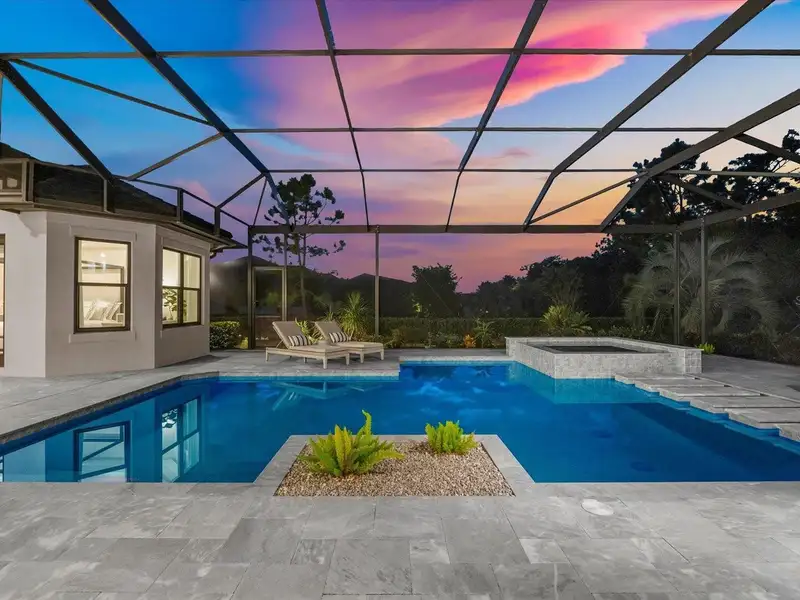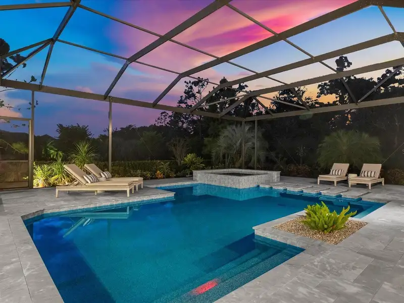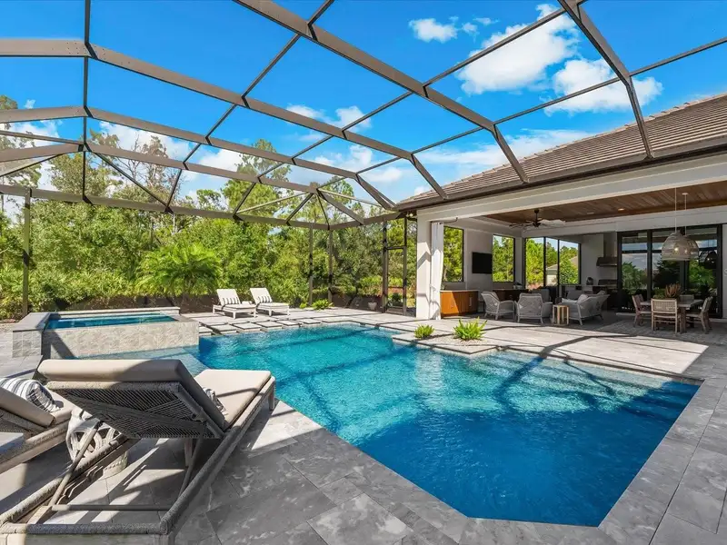 Under contract-accepting backup offers. A Rare Opportunity in The Concession – Former Anchor Builders Model. Why wait to build when you can move right into this award-winning, professionally decorated and fully furnished former model home? Winner of the 2021 Parade of Homes for Best Overall Home and Certified Green Home, this Anchor Builders’ masterpiece blends the highest level of quality and timeless craftsmanship with modern luxury, all set on a private one-acre homesite in the prestigious Concession. From the moment you arrive, the grand driveway and stone-columned entry create an unforgettable first impression. Step inside to soaring ceilings, walls of impact glass, oak floors, and architectural details that showcase the extraordinary level of finish. At the heart of the home, an open great room with a dramatic stone fireplace flows seamlessly into the chef’s kitchen equipped with Sub-Zero, Wolf, and Cove appliances, quartz counters, a large center island, raised panel custom cabinetry, and butler’s pantry. Every detail is designed for entertaining and effortless living. Relax in the primary suite, a spa-like retreat featuring a stand-alone tub, oversized shower, dual vanities with custom cabinetry, two walk-in closets with built-ins, and serene pool views. Three additional en-suite bedrooms each offer their own private sanctuary, complete with designer bathrooms and walk-in closets with custom shelving. Work from home in the office/den, complete with custom built-in shelves and a desk, offering both functionality and elegance. A versatile bonus room serves as a favorite gathering spot, with corner sliding doors that open to the outdoor lanai, perfect for entertainment, media, or play. But the true showstopper is outside. The expansive lanai is a resort all its own, complete with outdoor kitchen, fire pit, cypress wood ceilings, custom cypress cabinetry, leathered marble pavers, saltwater pool with sun shelf, and spa. Imagine evenings by the fire, weekend gatherings around the grill, and quiet mornings overlooking your private, wooded view. Smart home technology, energy-efficient insulation, custom window treatments, plantation shutters, and even a climate-controlled interior storage room ensure this residence is as functional as it is beautiful. Exquisite and meticulously maintained, this home enjoys an ideal location within The Concession, a gated community known for its privacy, serene natural beauty, and spacious estate homesites. Meticulously maintained and elegantly furnished, this is more than a home, it’s a statement of style, comfort, and luxury. Few properties offer this level of design, privacy, and lifestyle. Opportunities of this caliber within The Concession are exceedingly rare; experience a residence that truly stands apart.