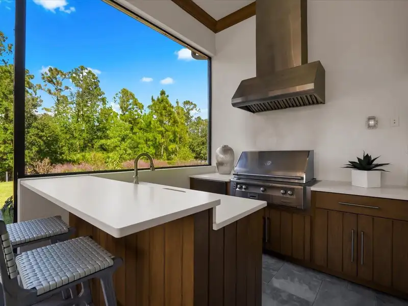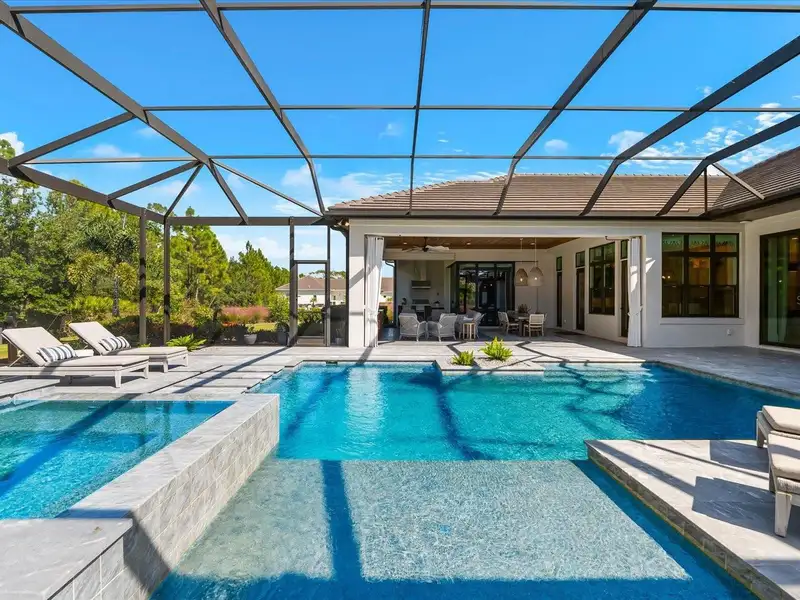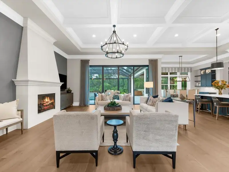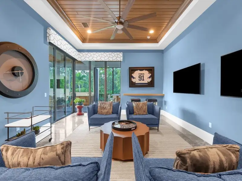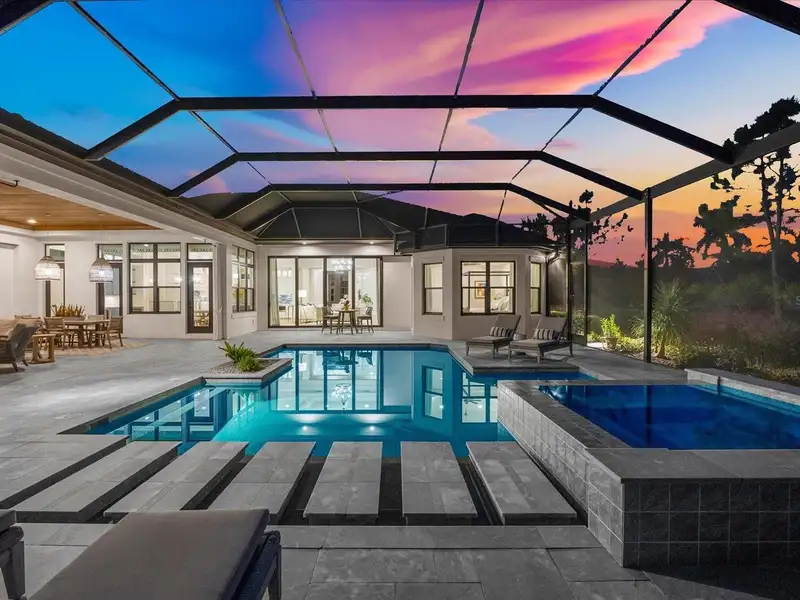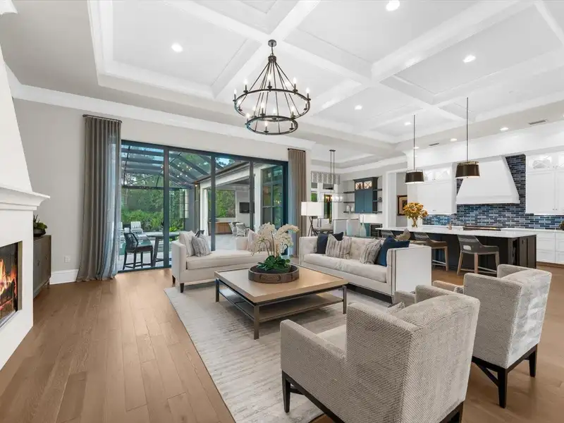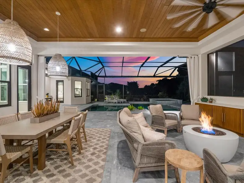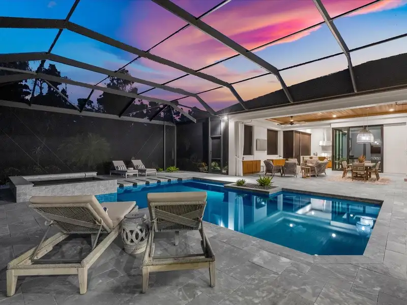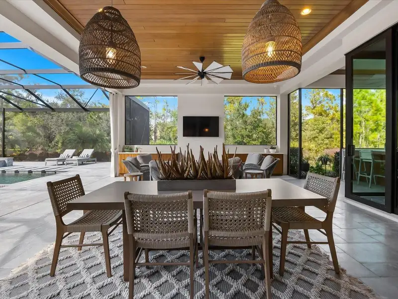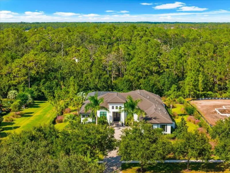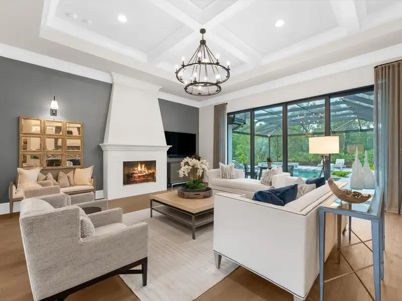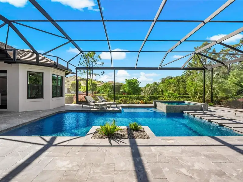 Under contract-accepting backup offers. A Rare Opportunity in The Concession – Former Anchor Builders Model. Why wait to build when you can move right into this award-winning, professionally decorated and fully furnished former model home? Winner of the 2021 Parade of Homes for Best Overall Home and Certified Green Home, this Anchor Builders’ masterpiece blends the highest level of quality and timeless craftsmanship with modern luxury, all set on a private one-acre homesite in the prestigious Concession. From the moment you arrive, the grand driveway and stone-columned entry create an unforgettable first impression. Step inside to soaring ceilings, walls of impact glass, oak floors, and architectural details that showcase the extraordinary level of finish. At the heart of the home, an open great room with a dramatic stone fireplace flows seamlessly into the chef’s kitchen equipped with Sub-Zero, Wolf, and Cove appliances, quartz counters, a large center island, raised panel custom cabinetry, and butler’s pantry. Every detail is designed for entertaining and effortless living. Relax in the primary suite, a spa-like retreat featuring a stand-alone tub, oversized shower, dual vanities with custom cabinetry, two walk-in closets with built-ins, and serene pool views. Three additional en-suite bedrooms each offer their own private sanctuary, complete with designer bathrooms and walk-in closets with custom shelving. Work from home in the office/den, complete with custom built-in shelves and a desk, offering both functionality and elegance. A versatile bonus room serves as a favorite gathering spot, with corner sliding doors that open to the outdoor lanai, perfect for entertainment, media, or play. But the true showstopper is outside. The expansive lanai is a resort all its own, complete with outdoor kitchen, fire pit, cypress wood ceilings, custom cypress cabinetry, leathered marble pavers, saltwater pool with sun shelf, and spa. Imagine evenings by the fire, weekend gatherings around the grill, and quiet mornings overlooking your private, wooded view. Smart home technology, energy-efficient insulation, custom window treatments, plantation shutters, and even a climate-controlled interior storage room ensure this residence is as functional as it is beautiful. Exquisite and meticulously maintained, this home enjoys an ideal location within The Concession, a gated community known for its privacy, serene natural beauty, and spacious estate homesites. Meticulously maintained and elegantly furnished, this is more than a home, it’s a statement of style, comfort, and luxury. Few properties offer this level of design, privacy, and lifestyle. Opportunities of this caliber within The Concession are exceedingly rare; experience a residence that truly stands apart.