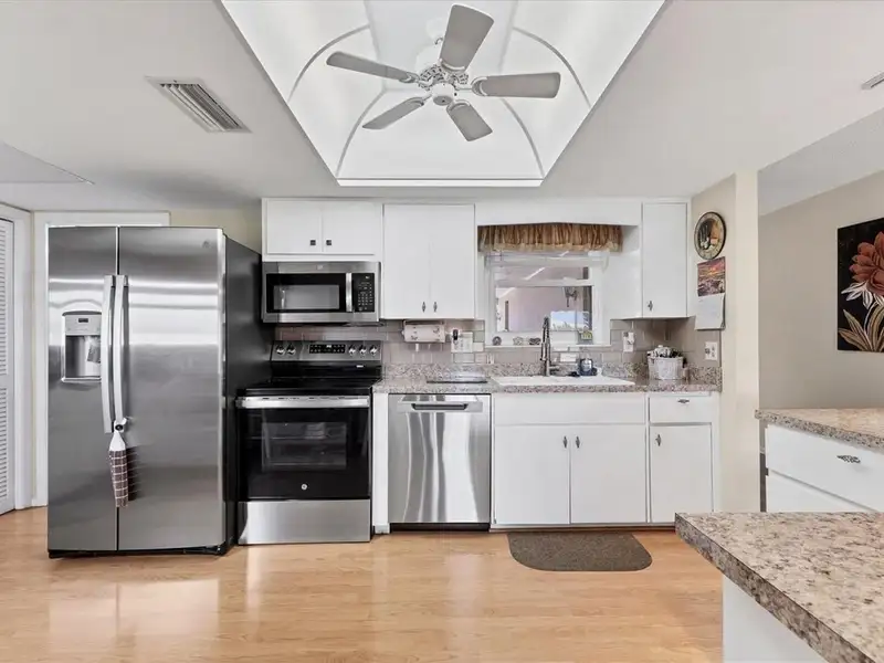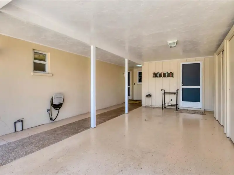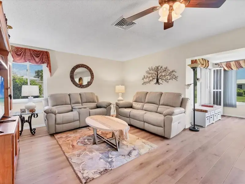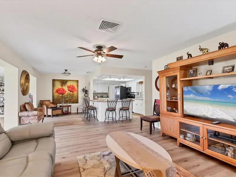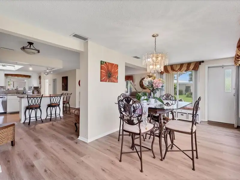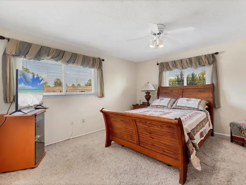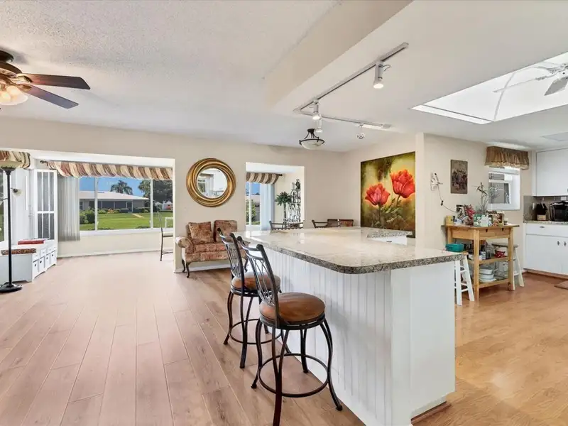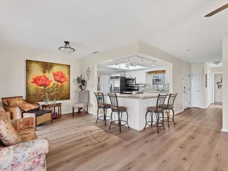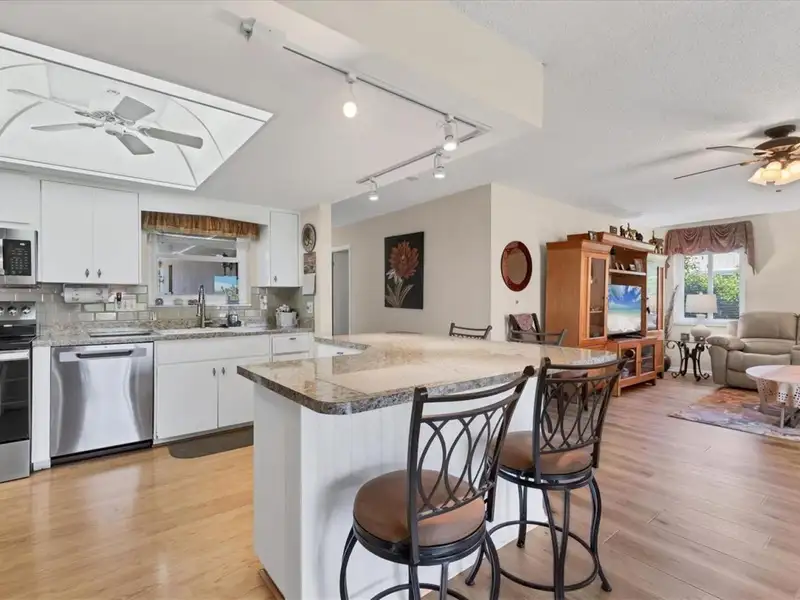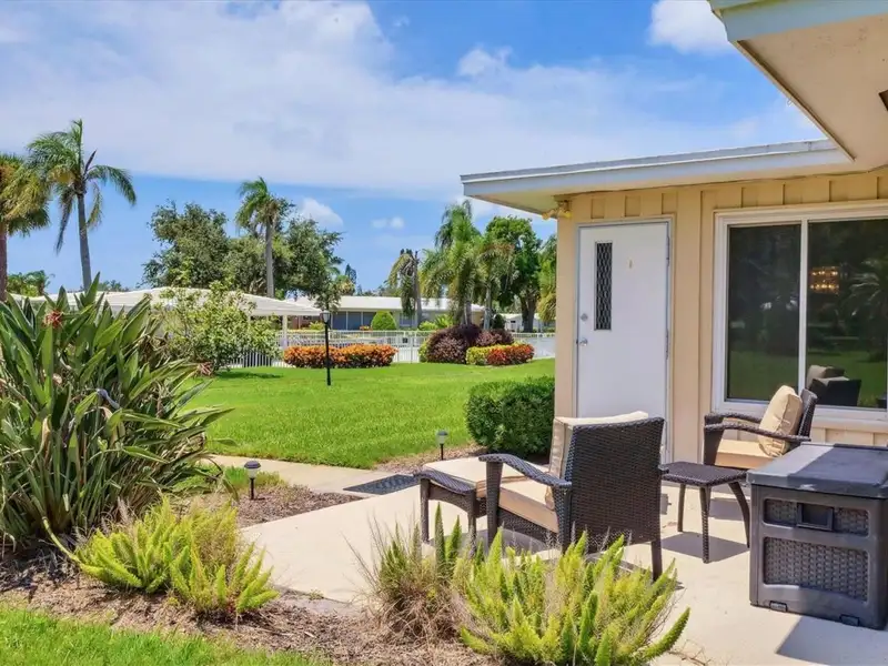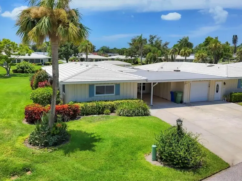 Experience the Florida lifestyle in far West Bradenton's Village Green Condominium Association, a 55+ maintenance-free community just 5.5 miles from Holmes Beach on Anna Maria Island. For a private viewing confirm your appointment with the listing agent today. This charming fully furnished and move-in-ready condo villa offers a perfect blend of comfort and convenience as a full-time residence, a lock and leave seasonal escape, or a smart investment. Having an open flowing floor plan really does make it perfect for entertaining. This villa features two large bedrooms and two bathrooms, offering generous storage space both inside and outside for comfortable living. The covered carport comes with added storage and is proven to be easy and affordable to add a garage door, just like the neighbor. The kitchen features an island workstation incorporated with more storage and a desirable openness to the living, dining and family room making communication a delight. Extra cabinets, a panty, laminate flooring and new in 2025 a Stainless Steel GE appliance package. The indoor laundry room features full size washer and dryer, a utility sink and a closet full of storage cabinets. For easy maintenance, newly installed vinyl plank flooring runs from the foyer through to the living, dining then to the Florida room. The two bedrooms still feature carpet and baths are tile. Both electric couches in the living room were just purchased. Multiple lights, fans and fixtures have been modernized. The baths have original vanities yet are super clean and presentable. The exterior windows are now double-pane insulated and energy efficient for year-round comfort. The 21 x 8.5 Florida room under air offers an abundance amount of extra living space for lounging and entertaining. The private outdoor 12 x 12.5 concrete patio is perfect for morning coffee or evening wine. The relaxing view consists of a well-maintained greenbelt in a park-like setting with a sidewalk just out the back door leading to the large community heated pool, dedicated only to Cluster 2. The tile roof 9/2008, flat roof 11/2022, A/C manufacturing date 7/2013, and the 40 gallon HWH 2023. You can have an inside cat but no dogs unless service or emotional support documentation. And no renting. All conveniently located to all of your personal needs, The Gulf Beaches, GT Bray Park, Robinson Preserve, Downtown Riverwalk, SRQ Airport. Sold AS IS with right to inspect. Temporarily in Probate. The closing date subject to court approval.