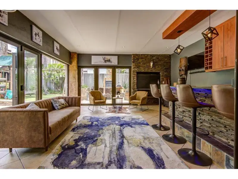 - Enclosed entertainment room with built-in bar
