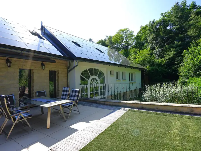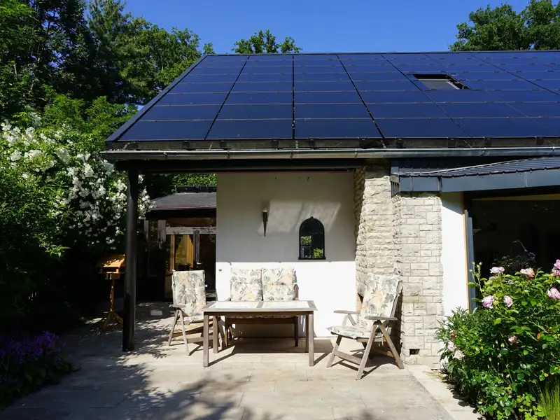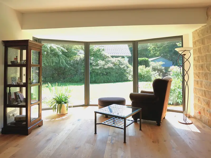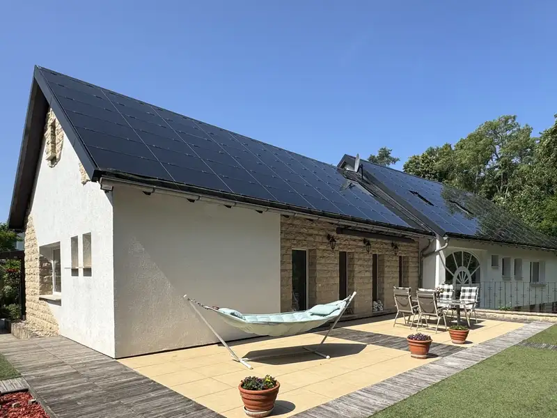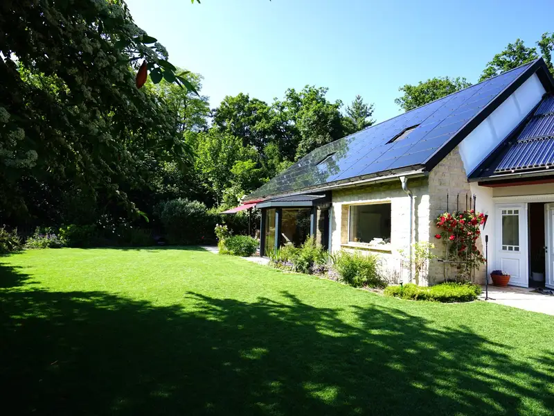The entire roof of the property is equipped with an efficient photovoltaic system, while a solar thermal system supports the hot water supply. The pre-installed heat pump has a heating and cooling function and is integrated into the underfloor heating system to ensure a comfortable living climate all year round.