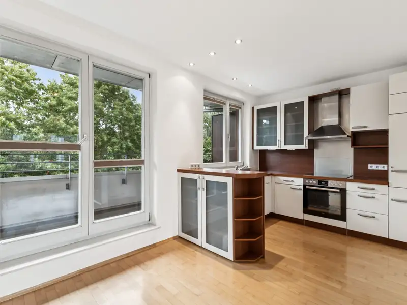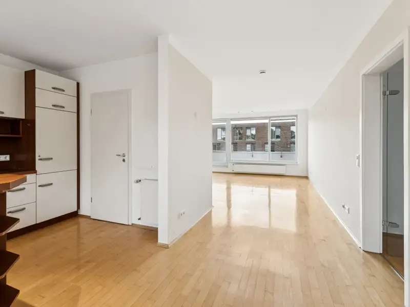 The apartment is characterized by a well thought-out room layout: A total of three well-designed rooms are available. The spacious, bright living and dining area forms the heart of the property and is open to the kitchen.
