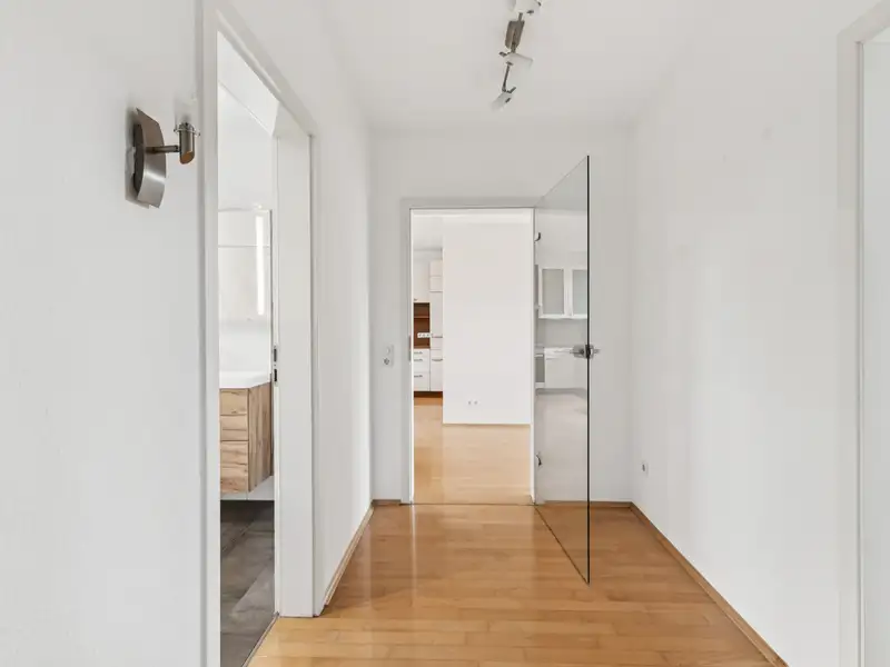 The open design options allow for a variety of furnishing ideas. Large windows provide pleasant daylight and create an inviting atmosphere. The other rooms lead off the central hallway - two quietly located bedrooms, which are ideal as bedrooms or studies. The bathroom is equipped with a walk-in shower, washbasin and WC and boasts a timeless design.