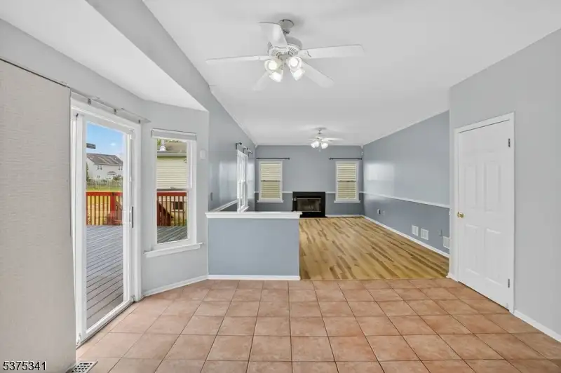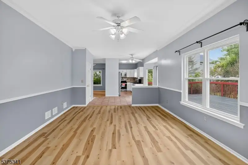 - Large deck with manicured backyard view