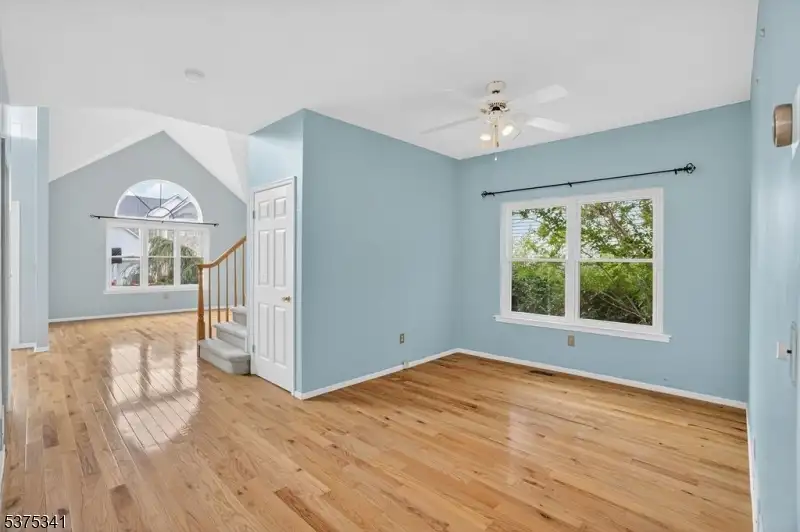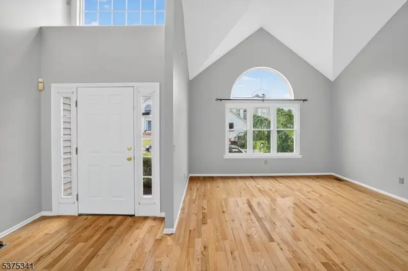 - Bright high-ceilinged foyer and living room