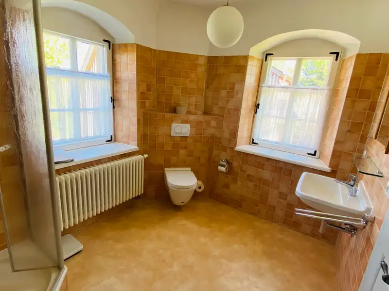The farmhouse has a living space of approx. 211.88 m² and was completely renovated in 2000. This home offers a separate party room and has an impressive vaulted cellar. Four bathrooms guarantee comfort and flexibility. The 2-room granny apartment offers numerous possibilities for use, be it as an office, for guests or for renting out.