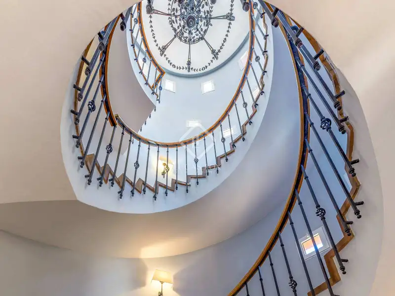 A beautiful spiral staircase leads up to the second floor. The sleeping area offers 3 double bedrooms, all with en-suite bathrooms and sitting rooms. The third floor is a charming open bedroom with walk-in closet, bathroom and individual terrace.