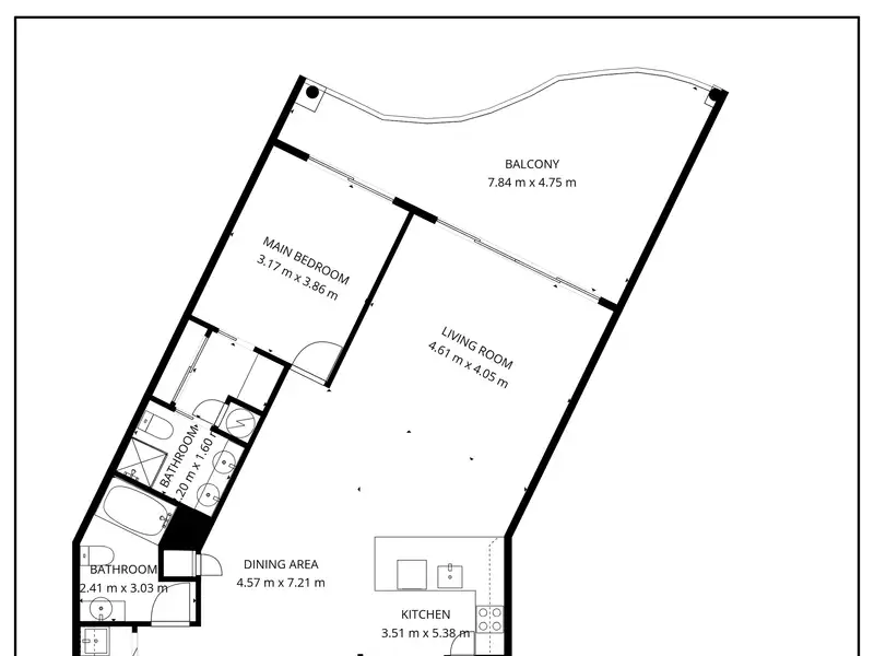 - Open plan living with oversized balcony