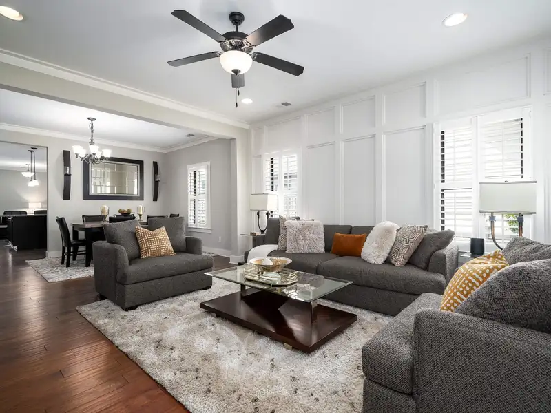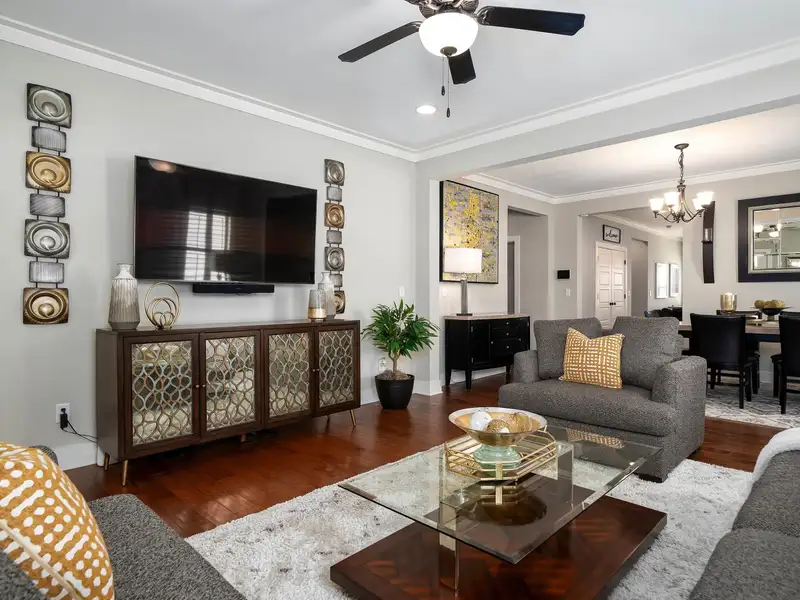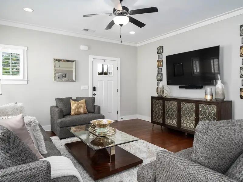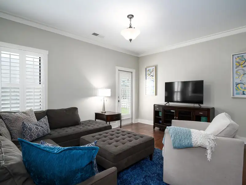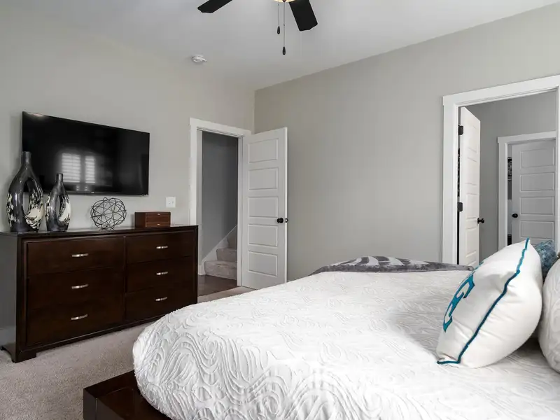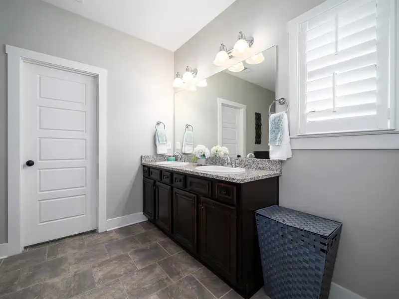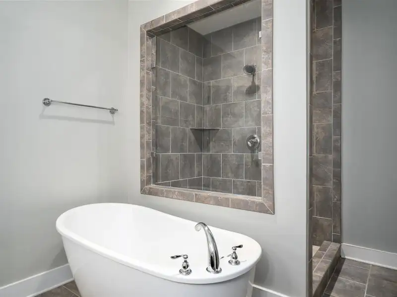 - Main-level primary suite with soaking tub