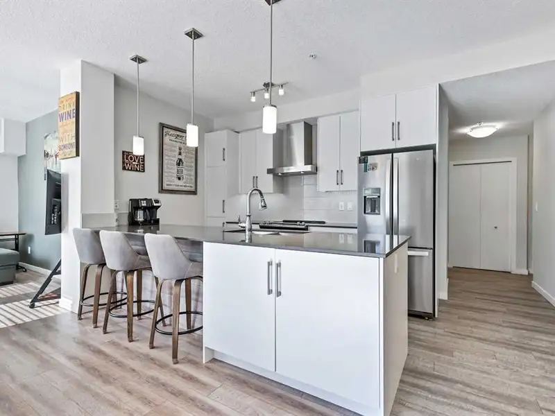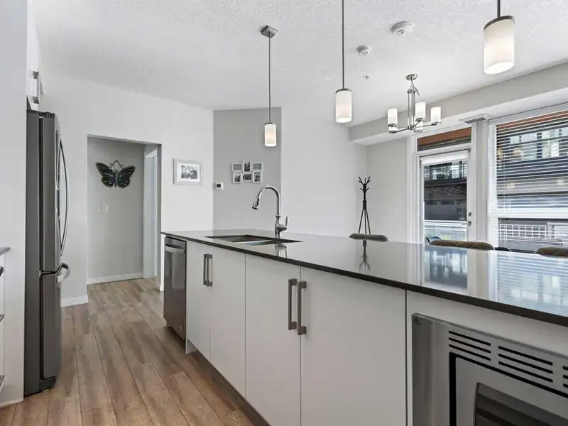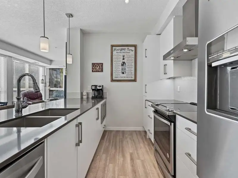 Watch the video, to see all of the amazing amenities available at Westman Village. Welcome to the Westman Village and all this highly coveted lake community has to offer. Located on a very quiet street, this main floor two-bedroom, two-bathroom unit boasts the convenience of a private entrance from the large patio to shopping and walking trails, making it ideal for pet owners. The living space of this open-concept home is flooded with natural light through the expansive windows. The white kitchen cabinetry and stainless-steel appliances provide a clean and simple palette for your decorating and furnishing choices. The expansive primary suite provides a spacious retreat complimented by a spacious ensuite. A guest bedroom with walk-in-closet and a 4-piece bath complete this beautiful home. Westman Village offers an unparalleled five-star resort style lifestyle with an array of exclusive amenities. Enjoy the convenience of 24-hour security & concierge service 7am-11pm, ensuring that all your needs are met at any time of the day or night. Secure titled indoor parking stall is located between two concrete pillars to eliminate the worry of door dings on your vehicle. The door to the assigned storage locker is located right in front of the parking stall. The community amenities are unmatched, featuring a car-wash bay, pet wash, wine cellar, events room, board room, indoor swimming pool with hot tub and water slide, a fully equipped fitness center, a spa, woodworking shop, art room, games room, indoor walking track, movie theater, gymnasium with pickleball courts, golf simulator, botanical garden, library, Arnie's rooftop terrace, and The Marketplace. Dining options abound with Chairman’s Steakhouse and other fine restaurants. Your friends will be impressed when you invite them to enjoy top-notch jazz entertainment, high-end drinks and fine dining at Alvin’s Jazz Club. Numerous fountains, park benches, bridges, and pathways create an impressive environment right outside your door. Relax knowing that safety is not a concern with the 24-hour Security. Private beaches, winter skating parties, summer BBQ's, and peaceful autumn strolls, Mahogany Lake offers year-round activities and the ultimate lake lifestyle. Convenience and luxury extend beyond your front door with an array of dining and shopping. Call your favourite Realtor today for a private showing.