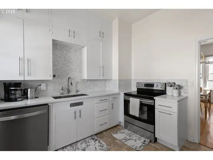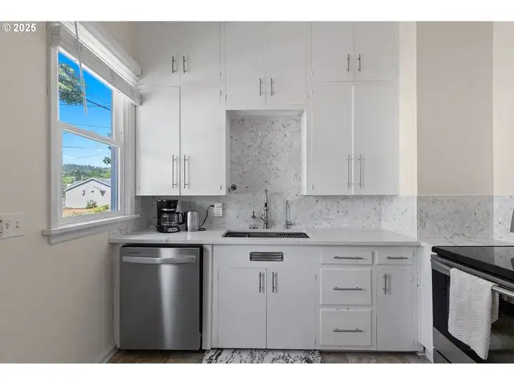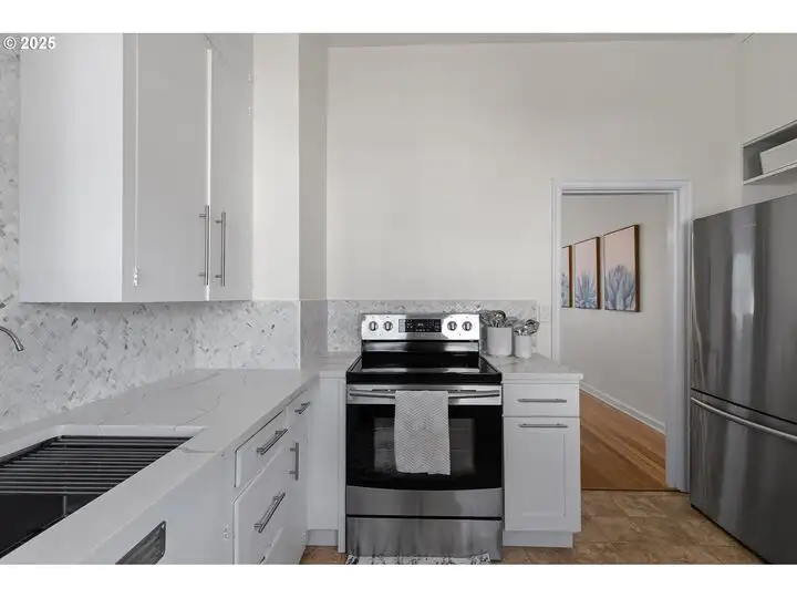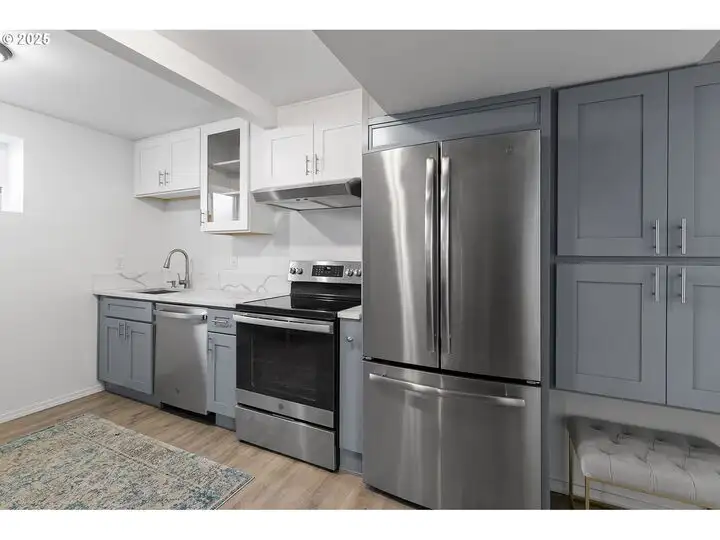 - Updated kitchen with custom shaker cabinetry