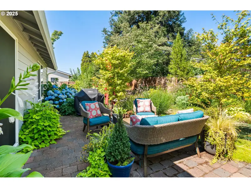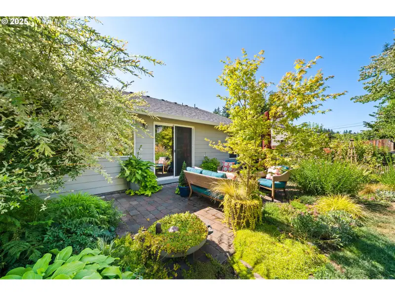 - Private backyard with extensive garden beds