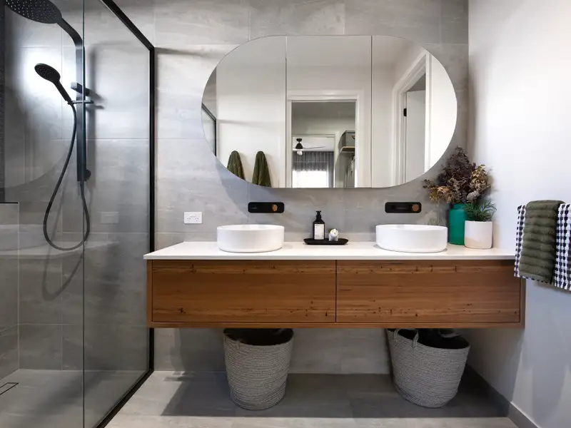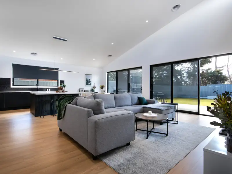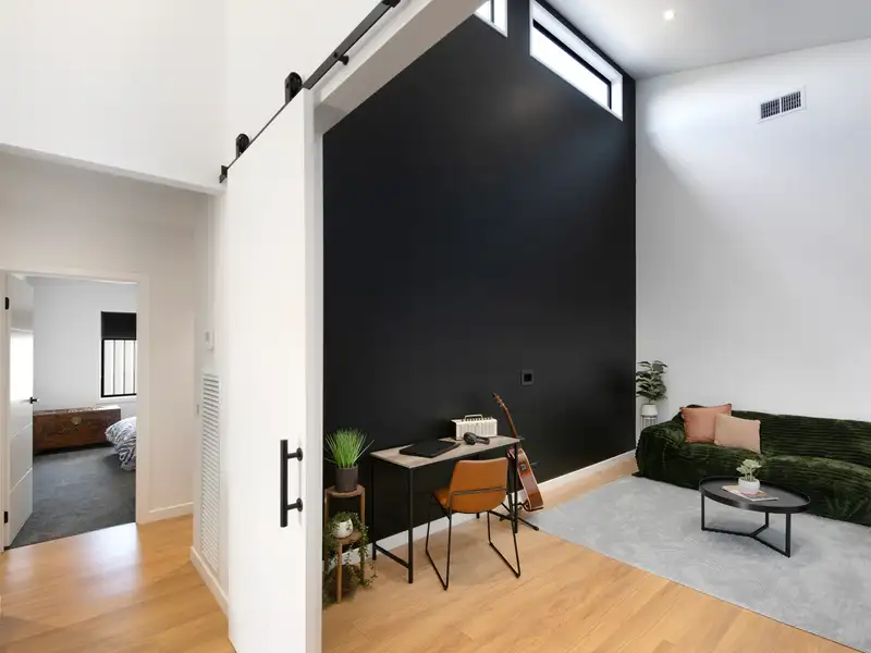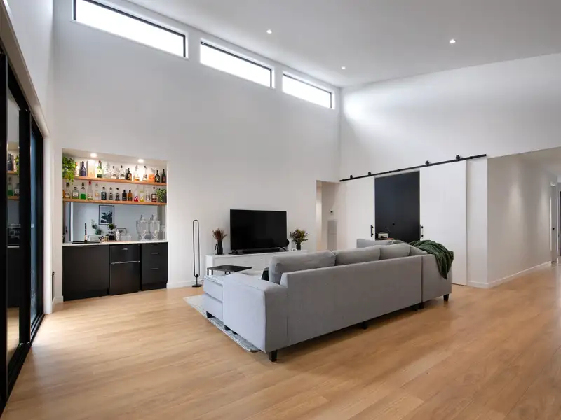 The main suite offers a retreat of rare proportions, with its own walk-in dressing room, and en-suite overflowing with modern elegance, complete with a double shower, wall-hung vanity, and separate WC. Three further bedrooms – two with robes – and the flexibility of a study or home office ensure the home adapts to the needs of a modern family. The second living area, cleverly cabled for a theatre setup and enclosed by sliding barn doors, brings versatility, creating opportunities for cinematic nights in or a private breakaway zone.