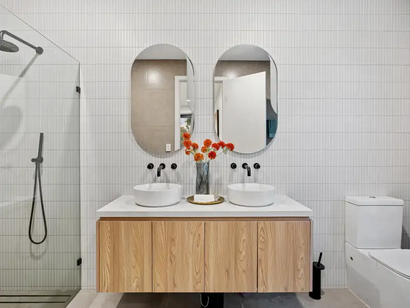 - Fully tiled ensuite: double vanity with twin backlit mirrors