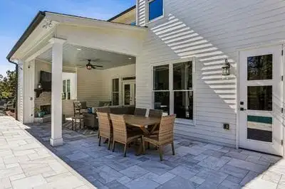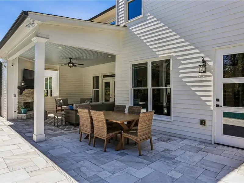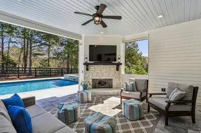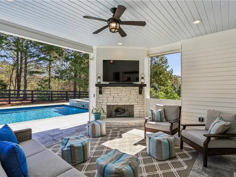 - Covered patio with fireplace and TV