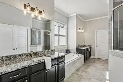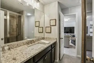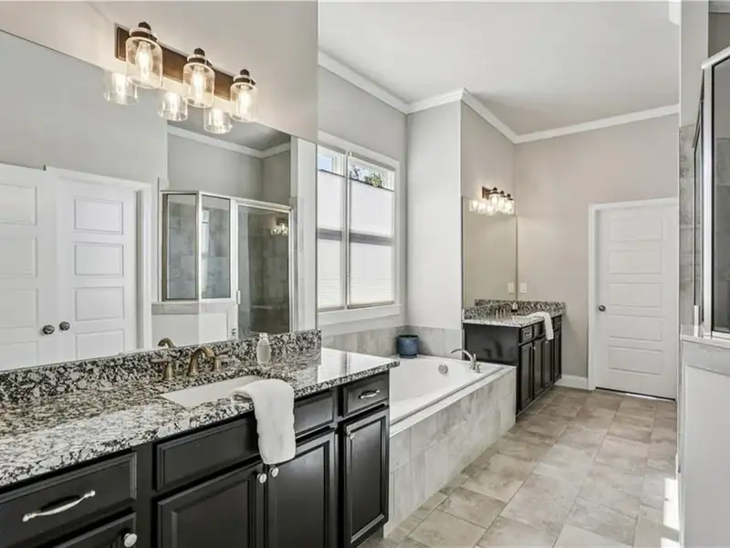 - Main-level primary suite with spa bath