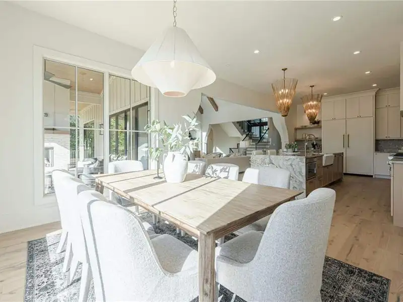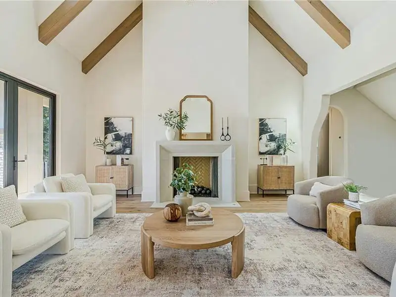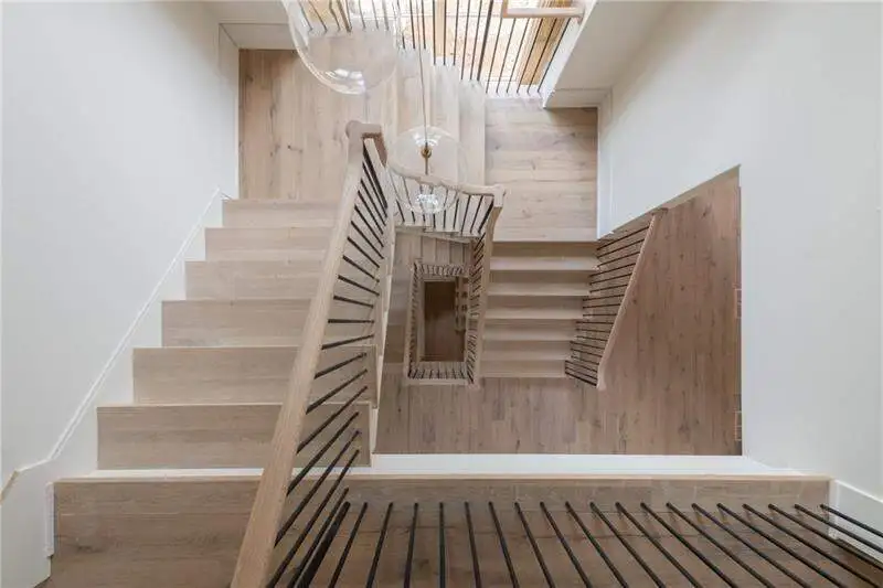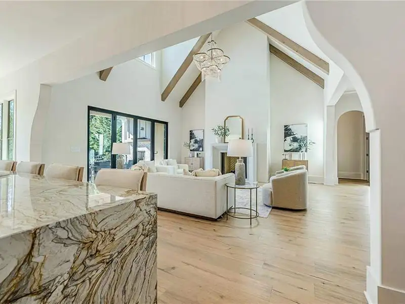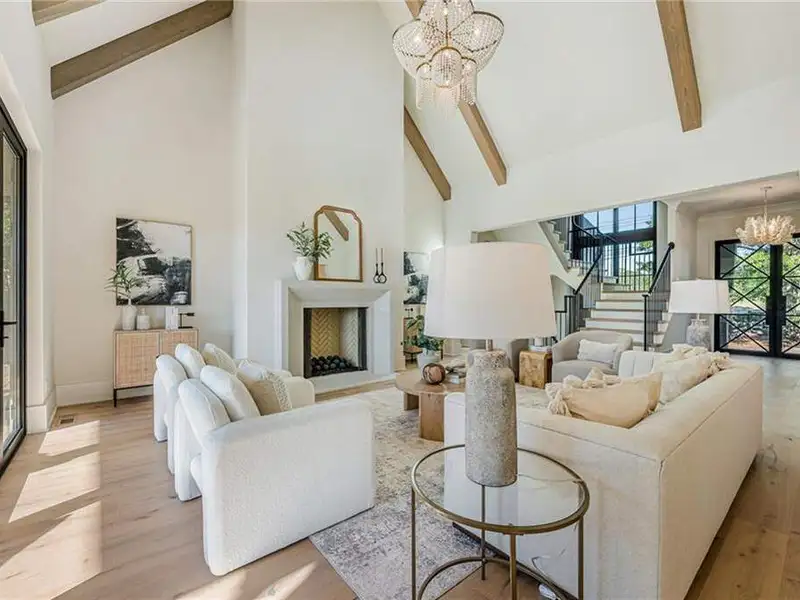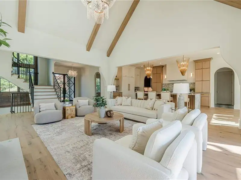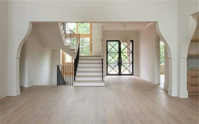- Dramatic three-level staircase with vaulted ceilings